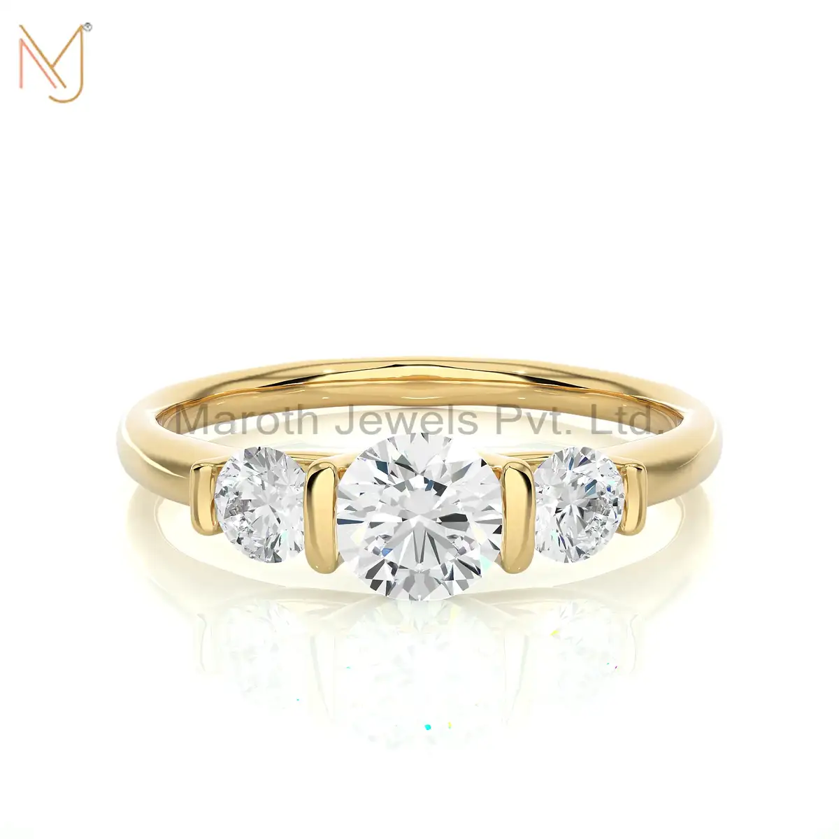 Private Lable 925 Silver Yellow Gold Moissanite Round Ring Jewelry
