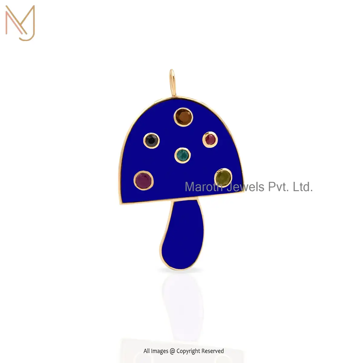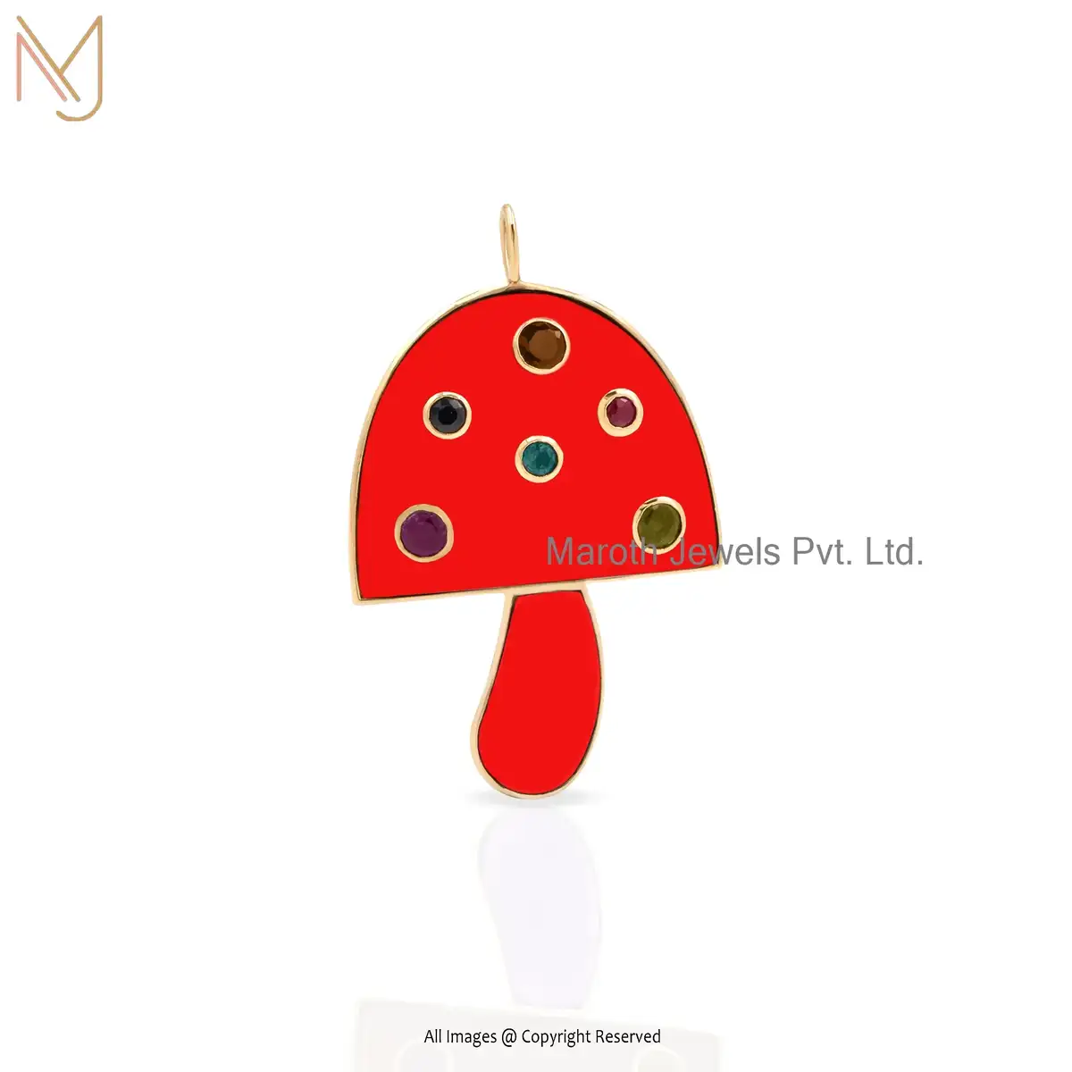Private Lable 925 Silver Yellow Gold Multi Gemstone Enamel Mushroom Pendant Jewelry