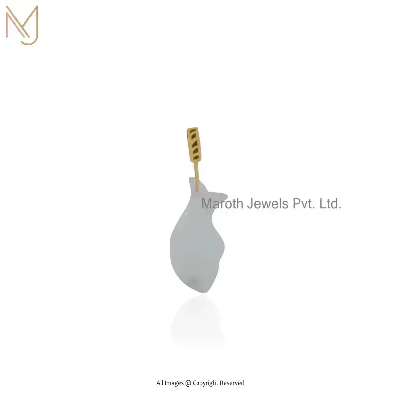 Private Lable 925 Silver Yellow Gold Plated Aquamarine CZ & Black Enamel Fish Gemstone Pendant