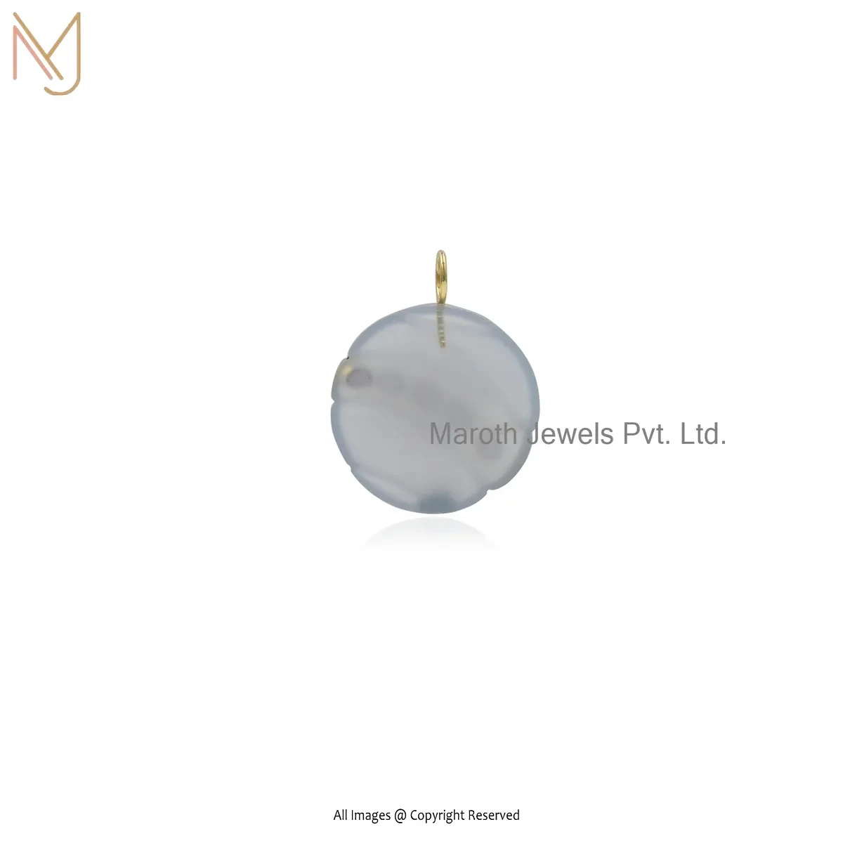 Private Lable 925 Silver Yellow Gold Plated Blue Chalcedony & Pink Cubic Zircon Ball Pendant
