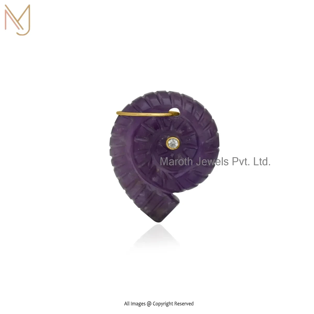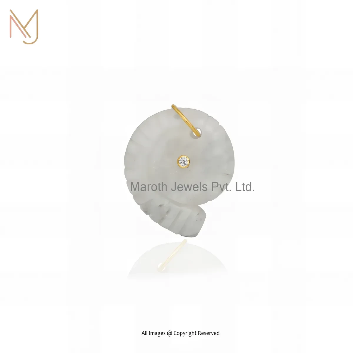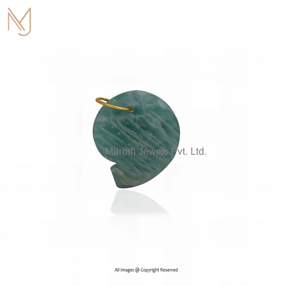 Private Lable 925 Silver Yellow Gold Plated Cubic Zircon & Amazonite Gemstone Shell Pendant