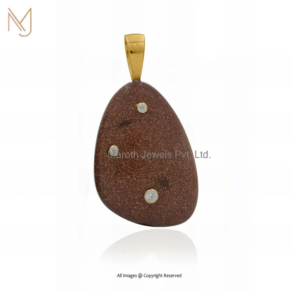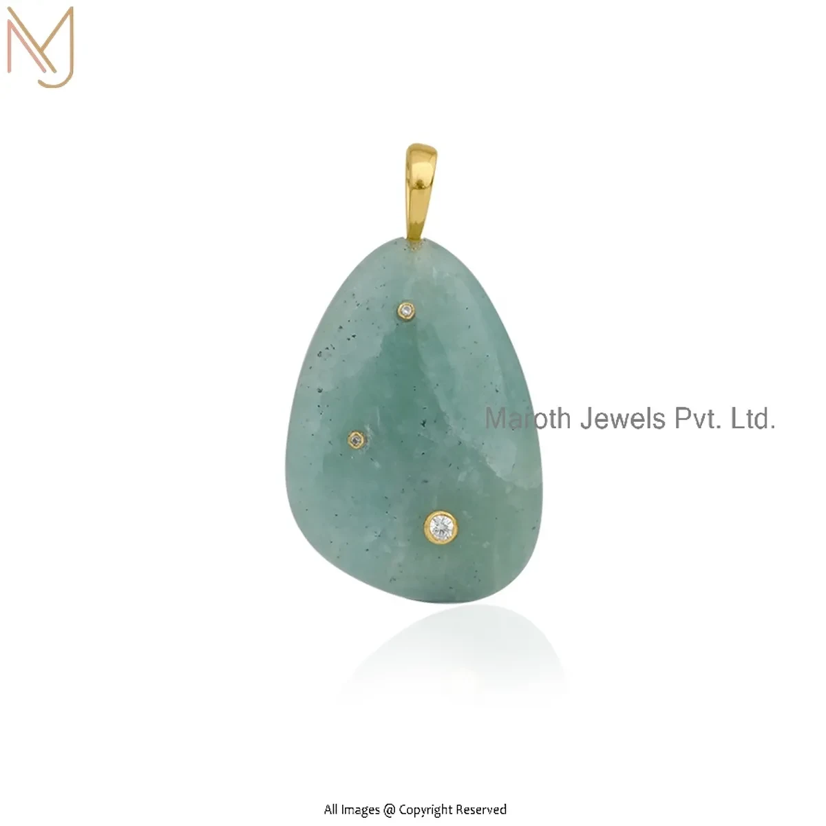 Private Lable 925 Silver Yellow Gold Plated Cubic Zircon & Amazonite Gemstone Teardrop Pendant
