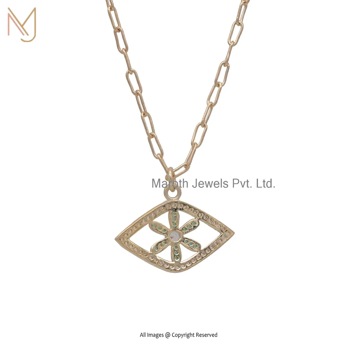 Private Lable 925 Silver Yellow Gold Plated Cubic Zircon And Green Onyx Evil Eye Pendant