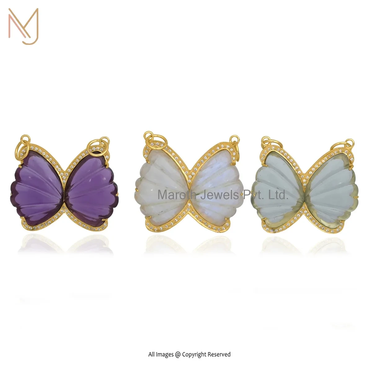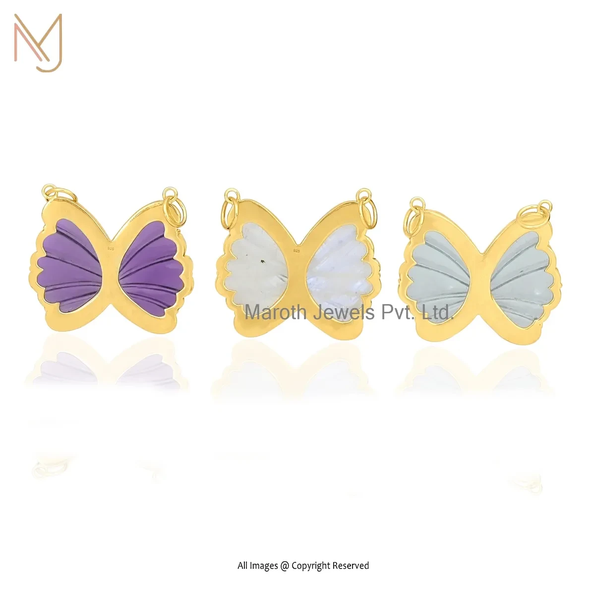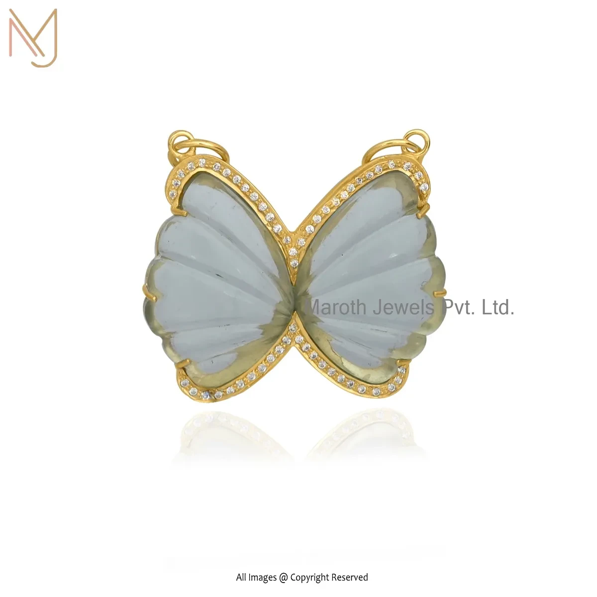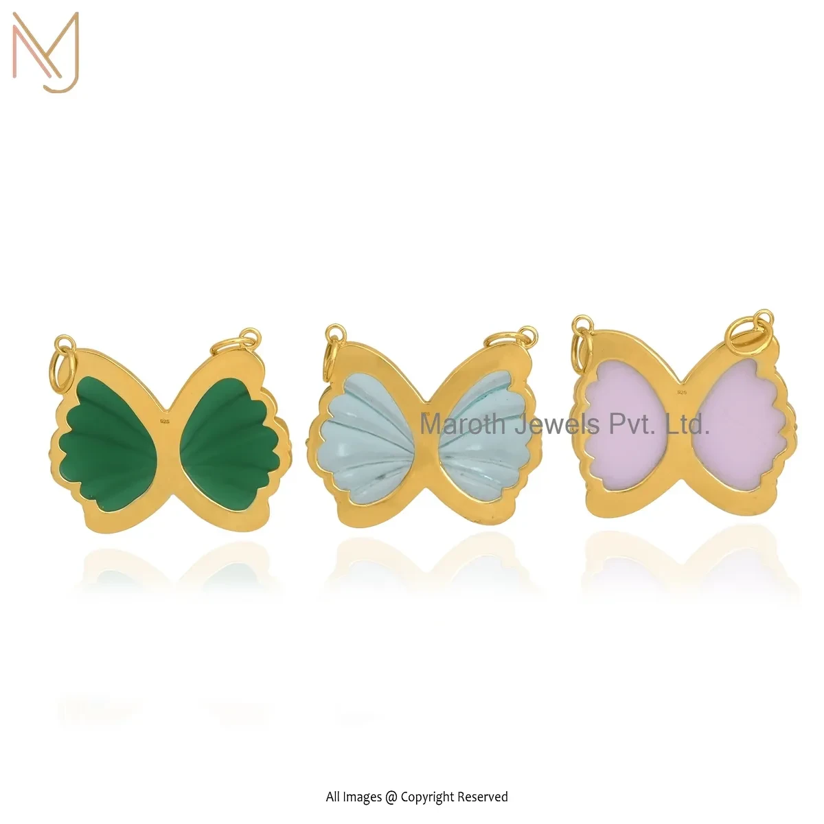 Private Lable 925 Silver Yellow Gold Plated Cubic Zircon & Aquamarine Butterfly Pendant