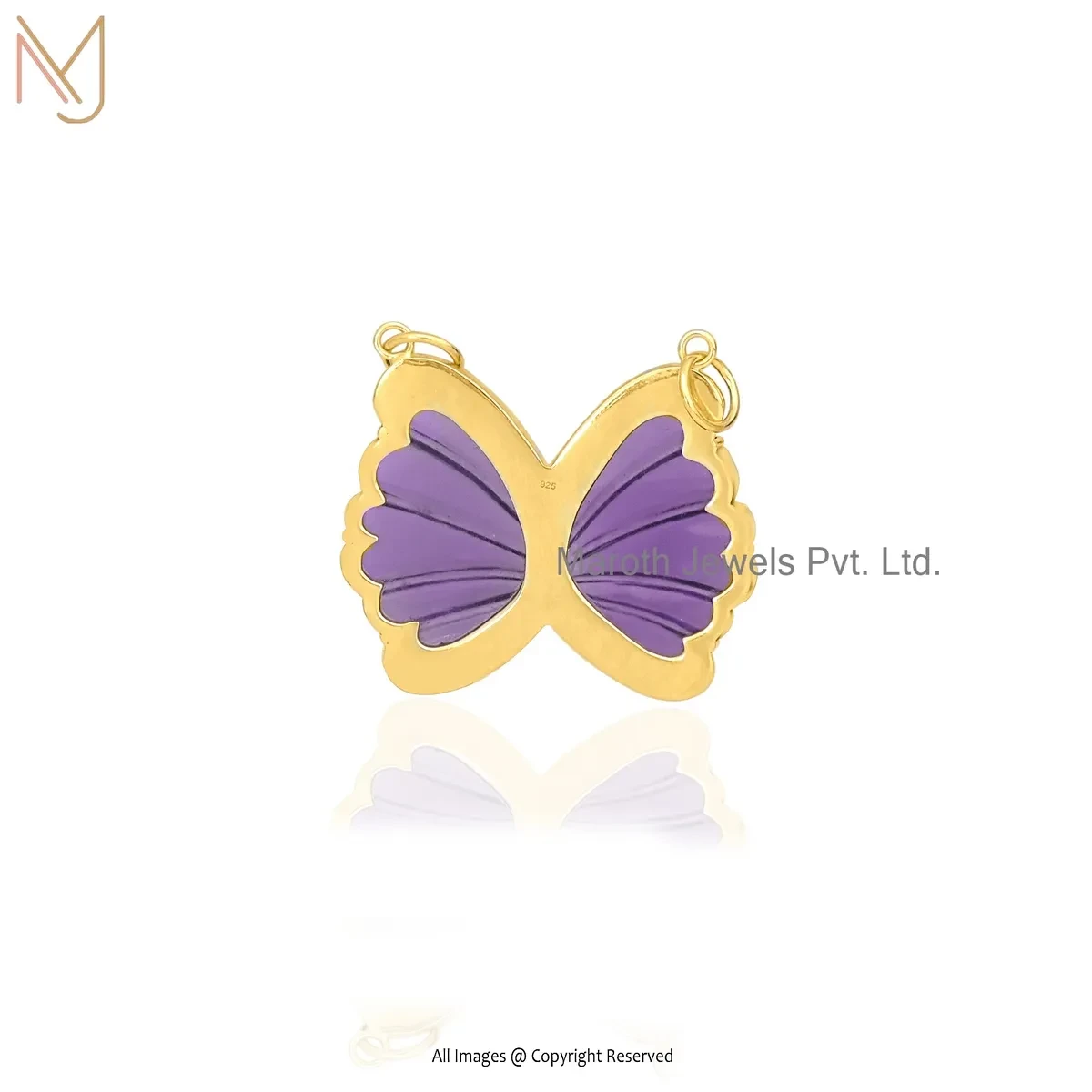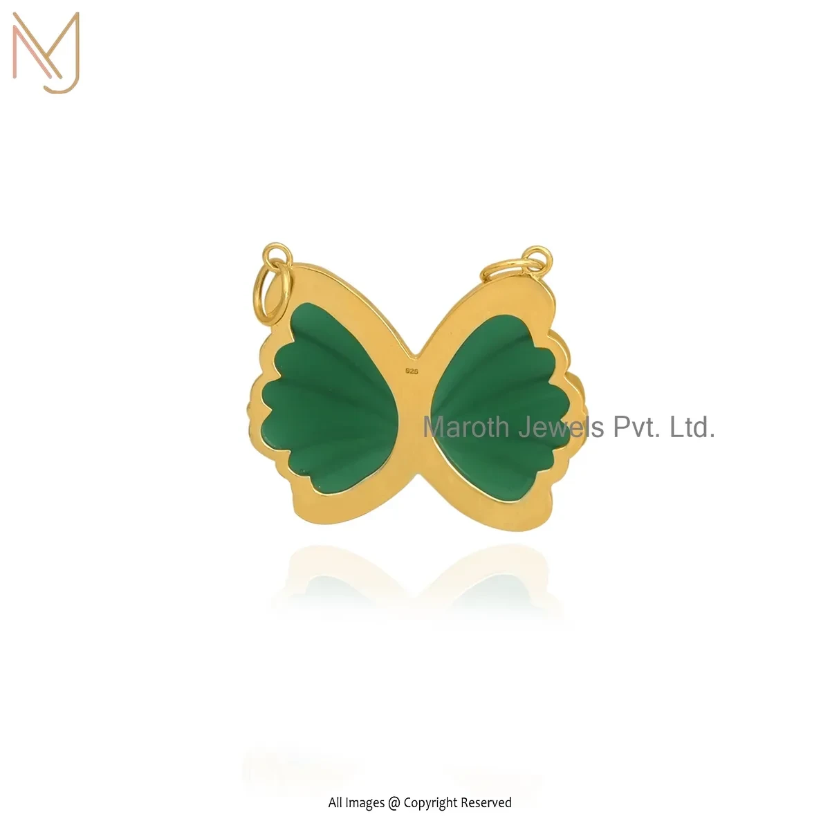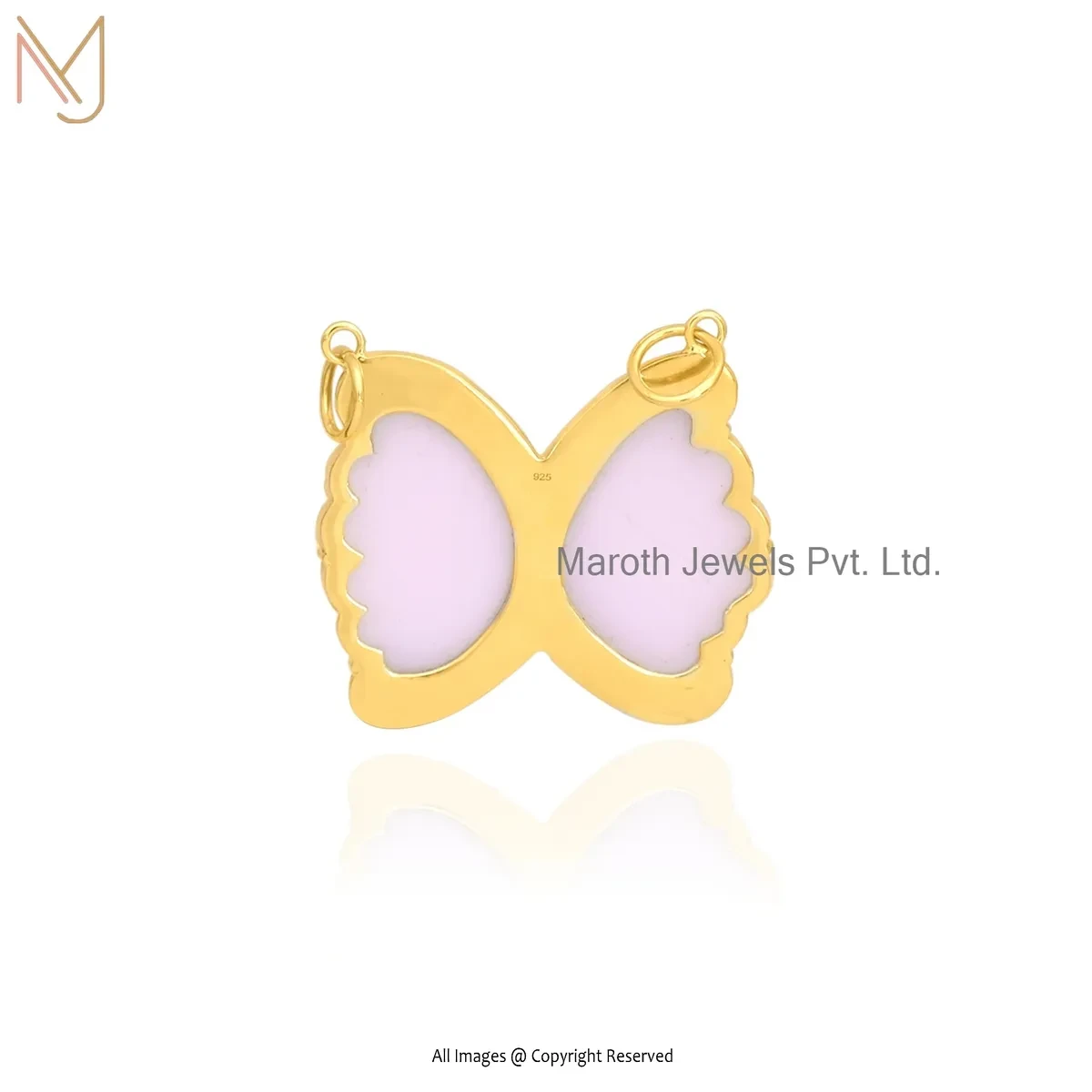 Private Lable 925 Silver Yellow Gold Plated Cubic Zircon & Aquamarine Butterfly Pendant