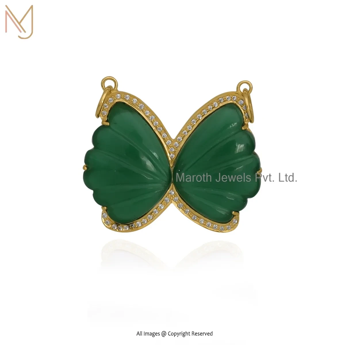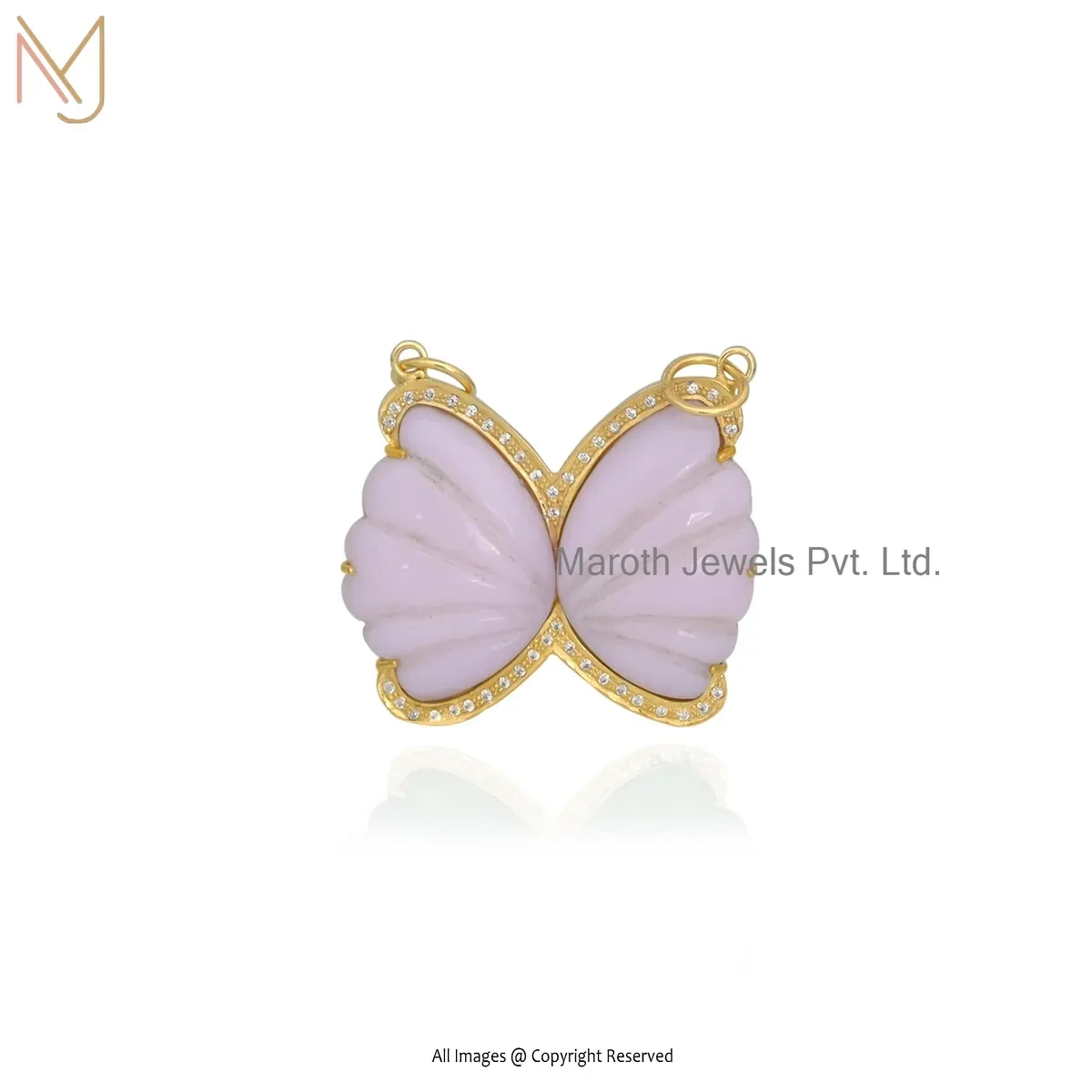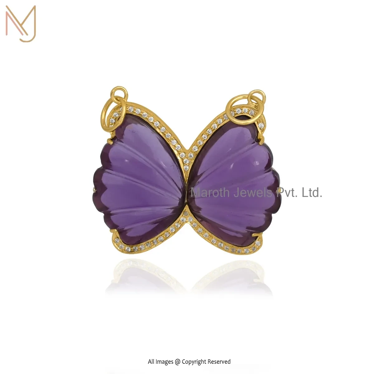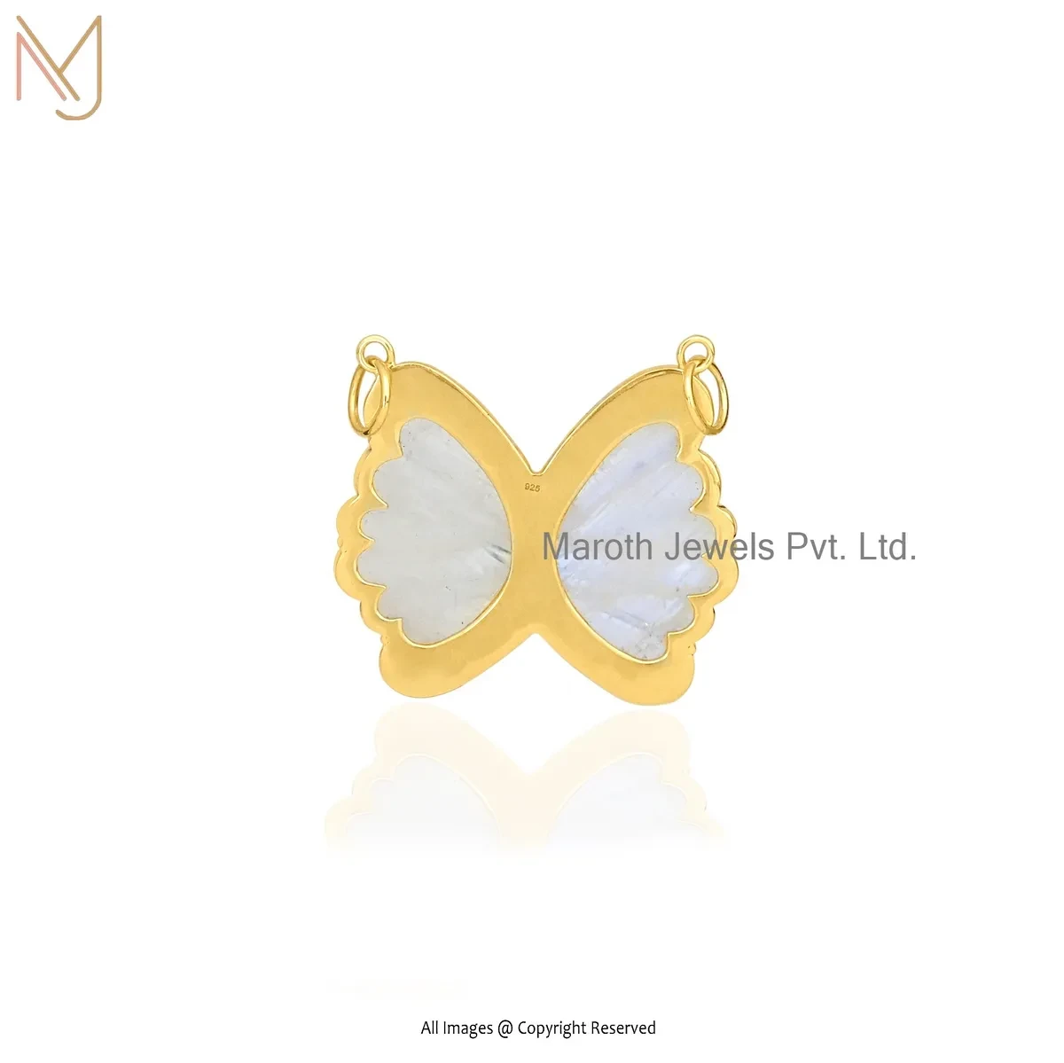 Private Lable 925 Silver Yellow Gold Plated Cubic Zircon & Aquamarine Butterfly Pendant
