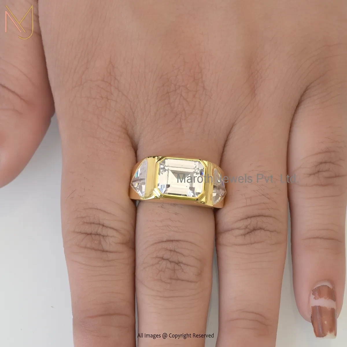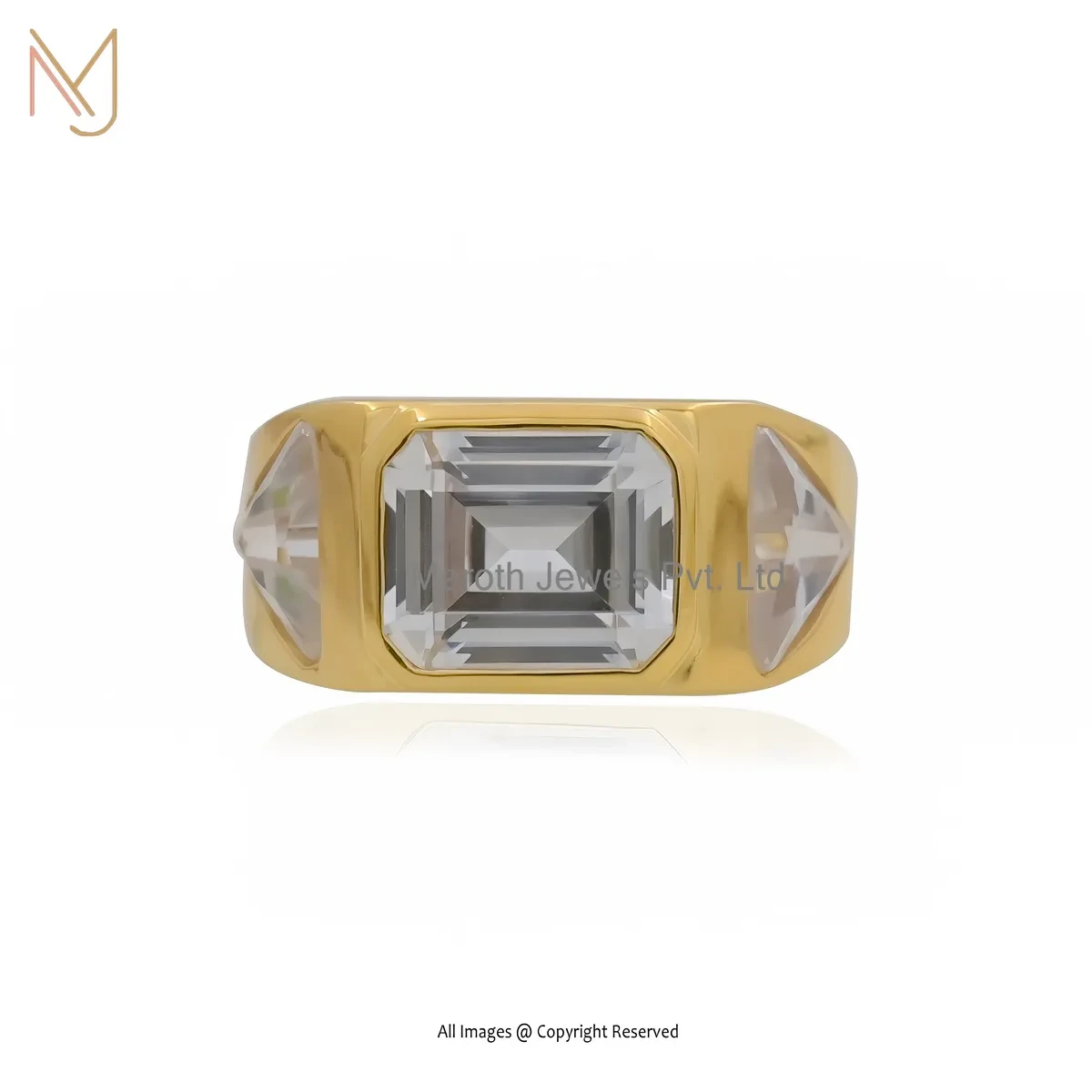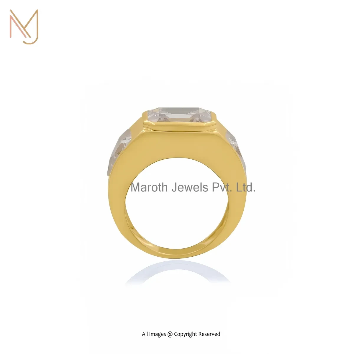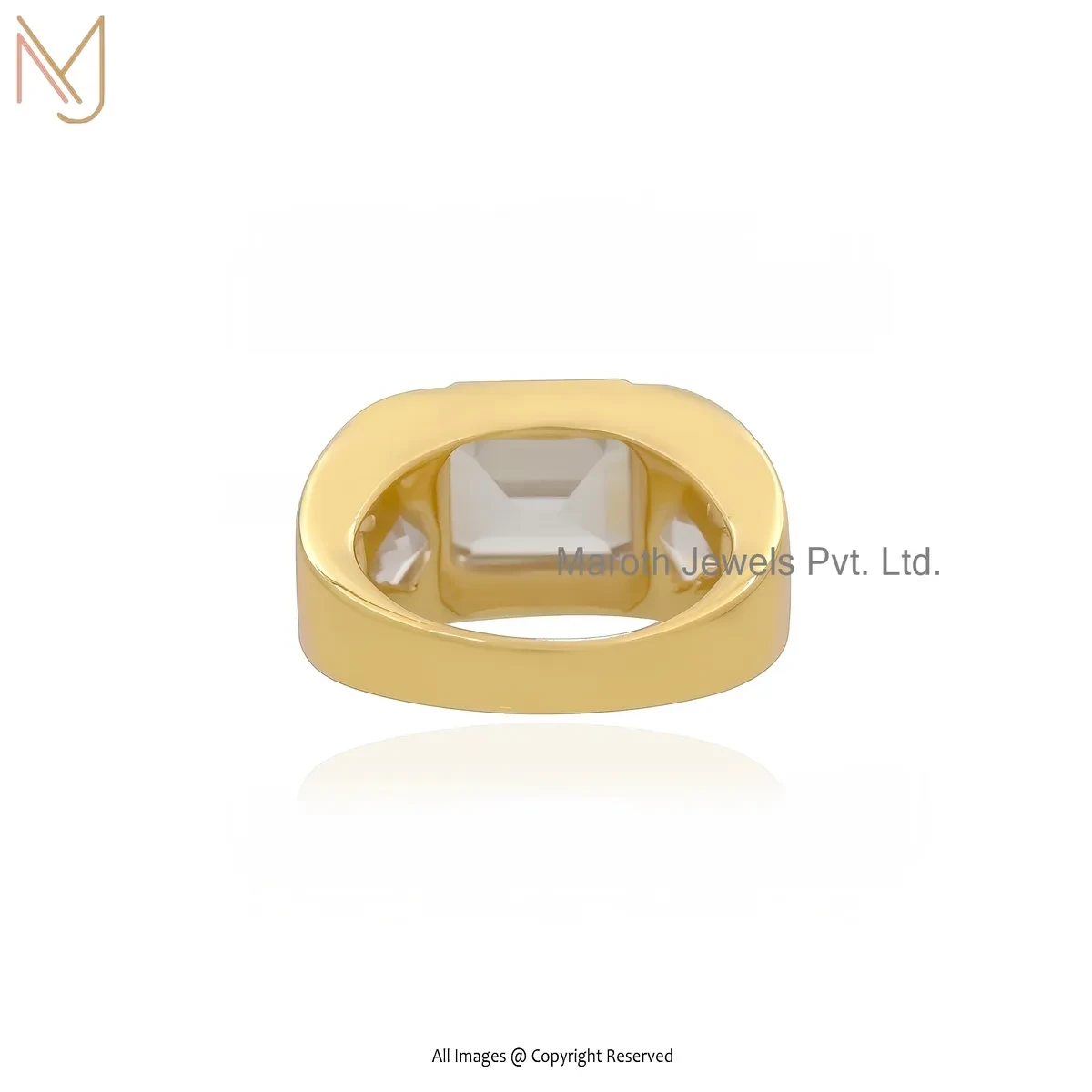 Private Lable 925 Silver Yellow Gold Plated Cubic Zircon Baguette Diamond Band RIng