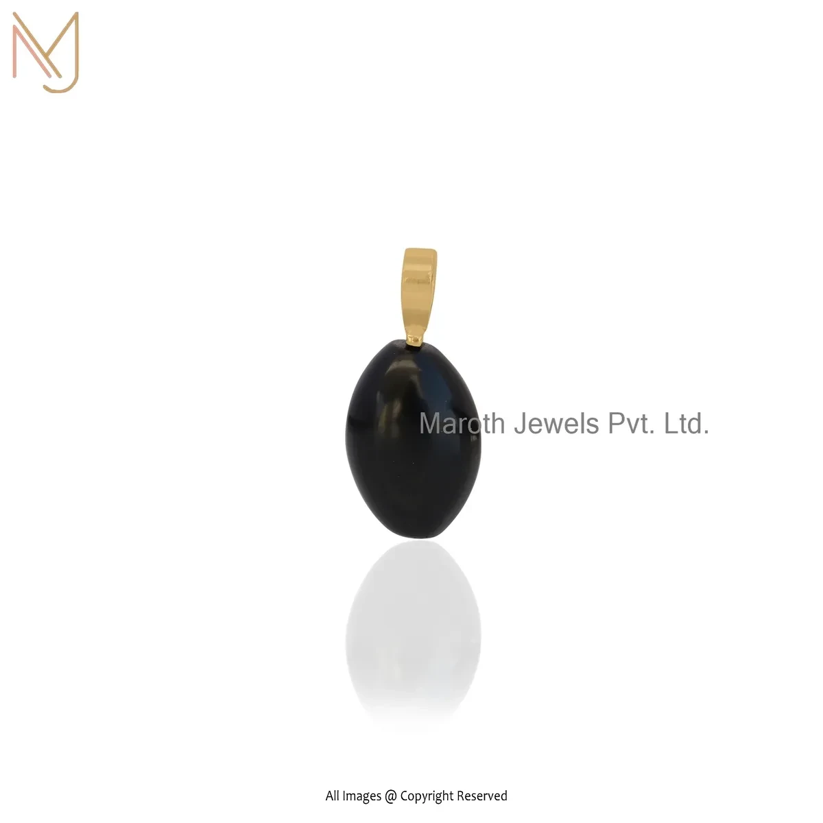 Private Lable 925 Silver Yellow Gold Plated Cubic Zircon & Black Onyx Gemstone Kodi Pendant