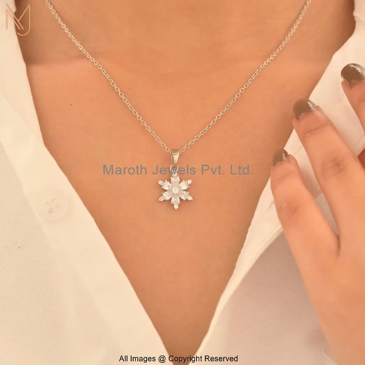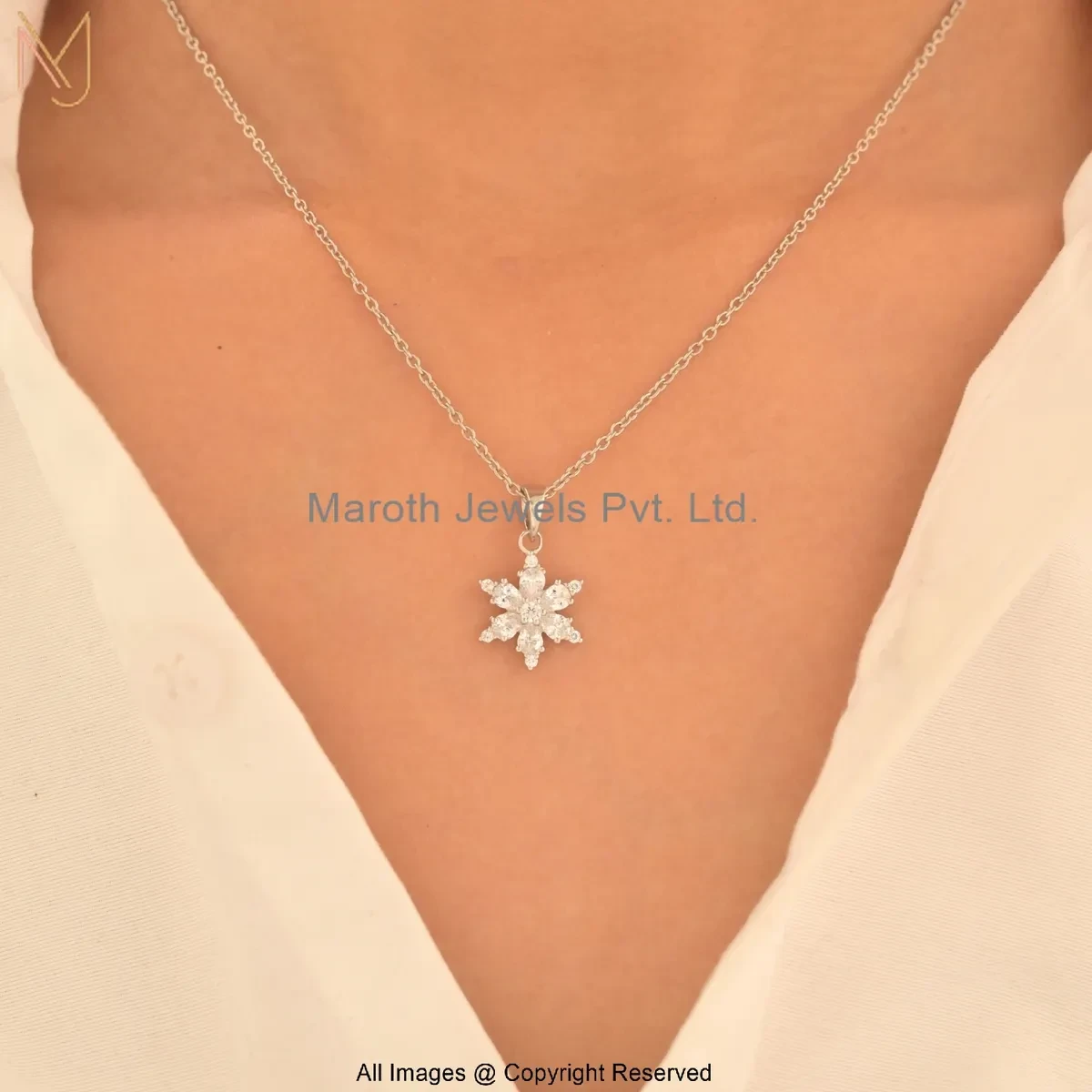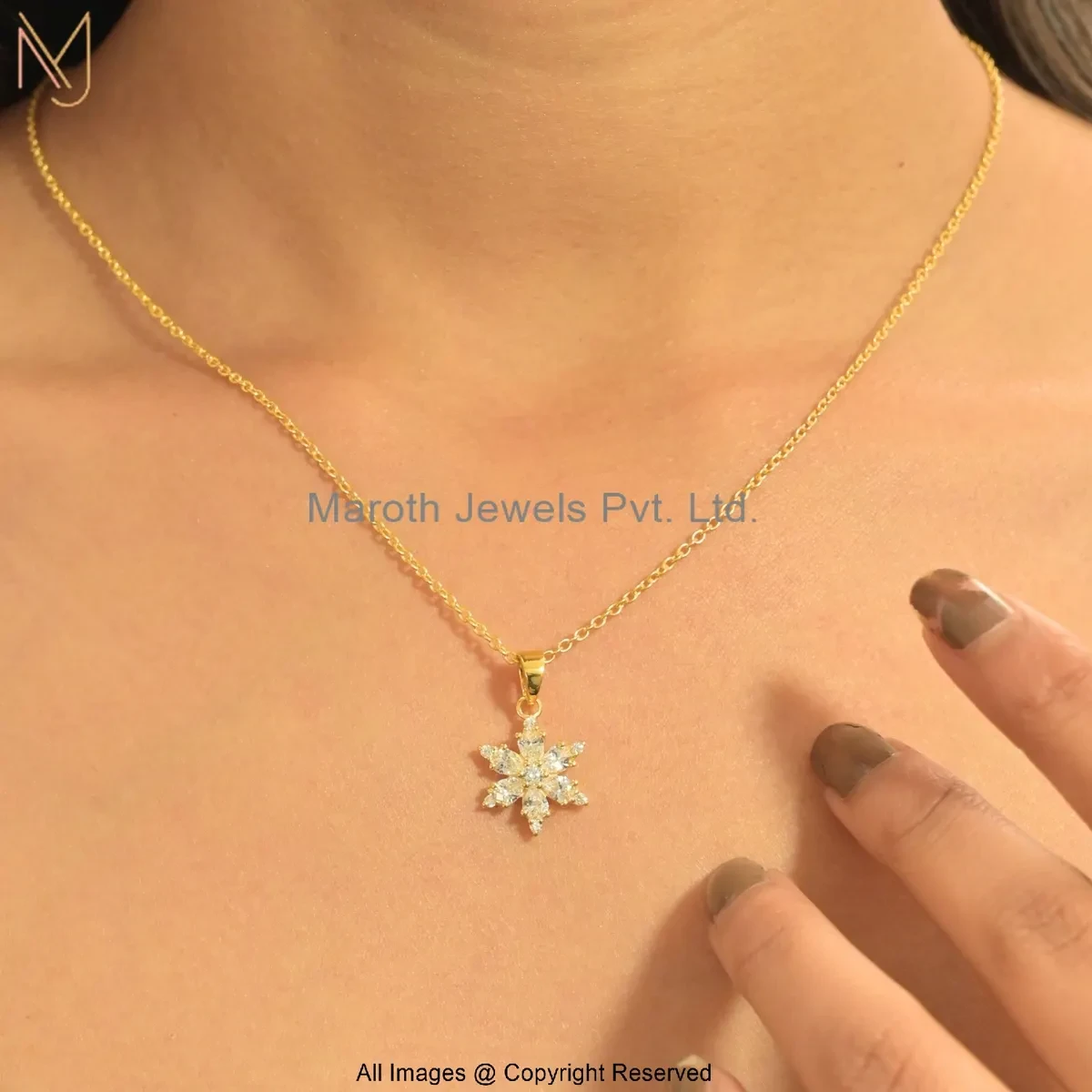 Private Lable 925 Silver Yellow Gold Plated Cubic Zircon Diamond Floral Snowflake Pendant Necklace