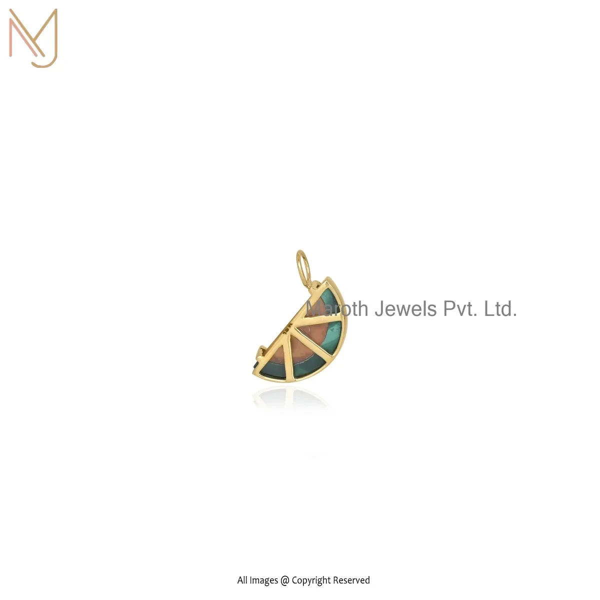Private Lable 925 Silver Yellow Gold Plated Cubic Zircon & Gemstone Watermelon Pendant Jewelry