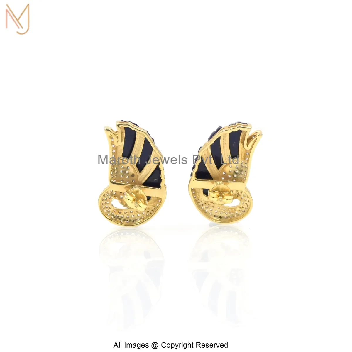 Private Lable 925 Silver Yellow Gold Plated Cubic Zircon Lapiz Lazuli Royal Blue Feather Diamond Earring