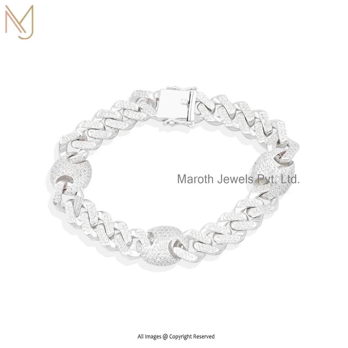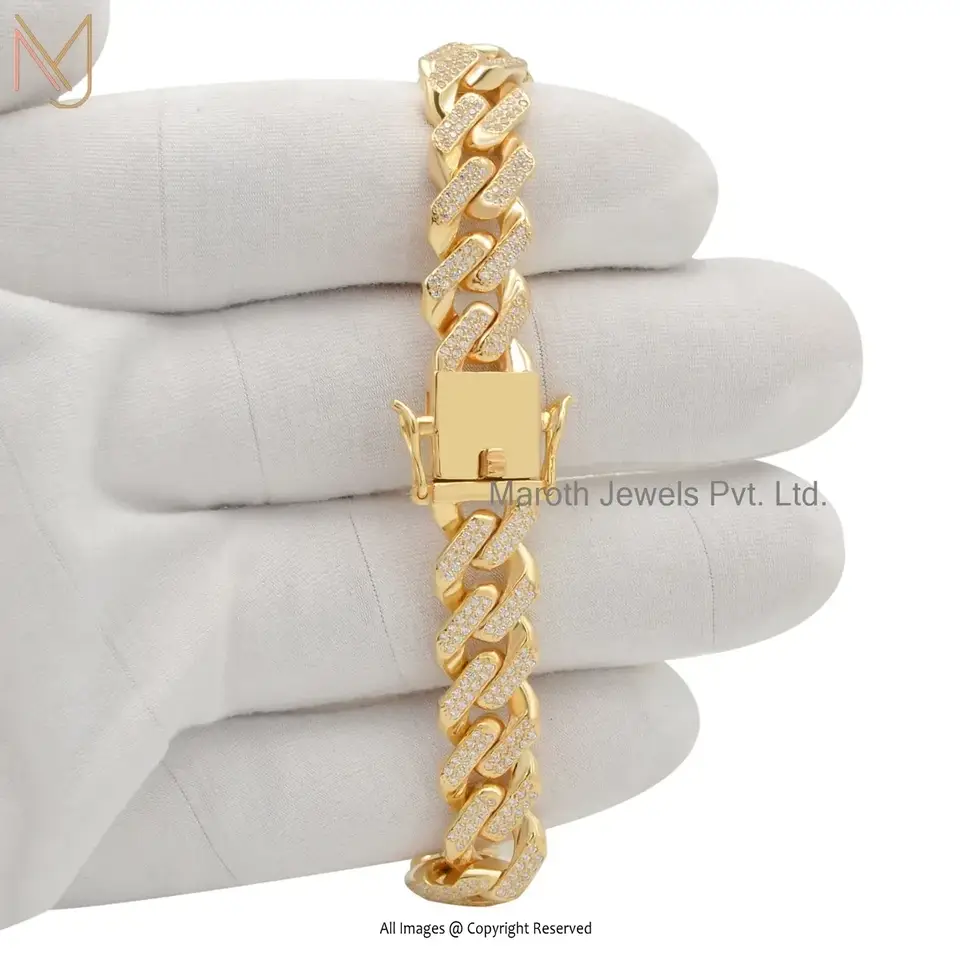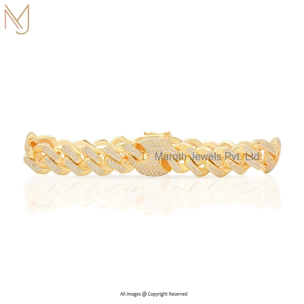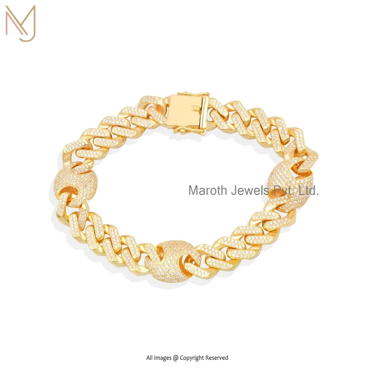 Private Lable 925 Silver Yellow Gold Plated Cubic Zircon Man's Curb Chains Bracelet