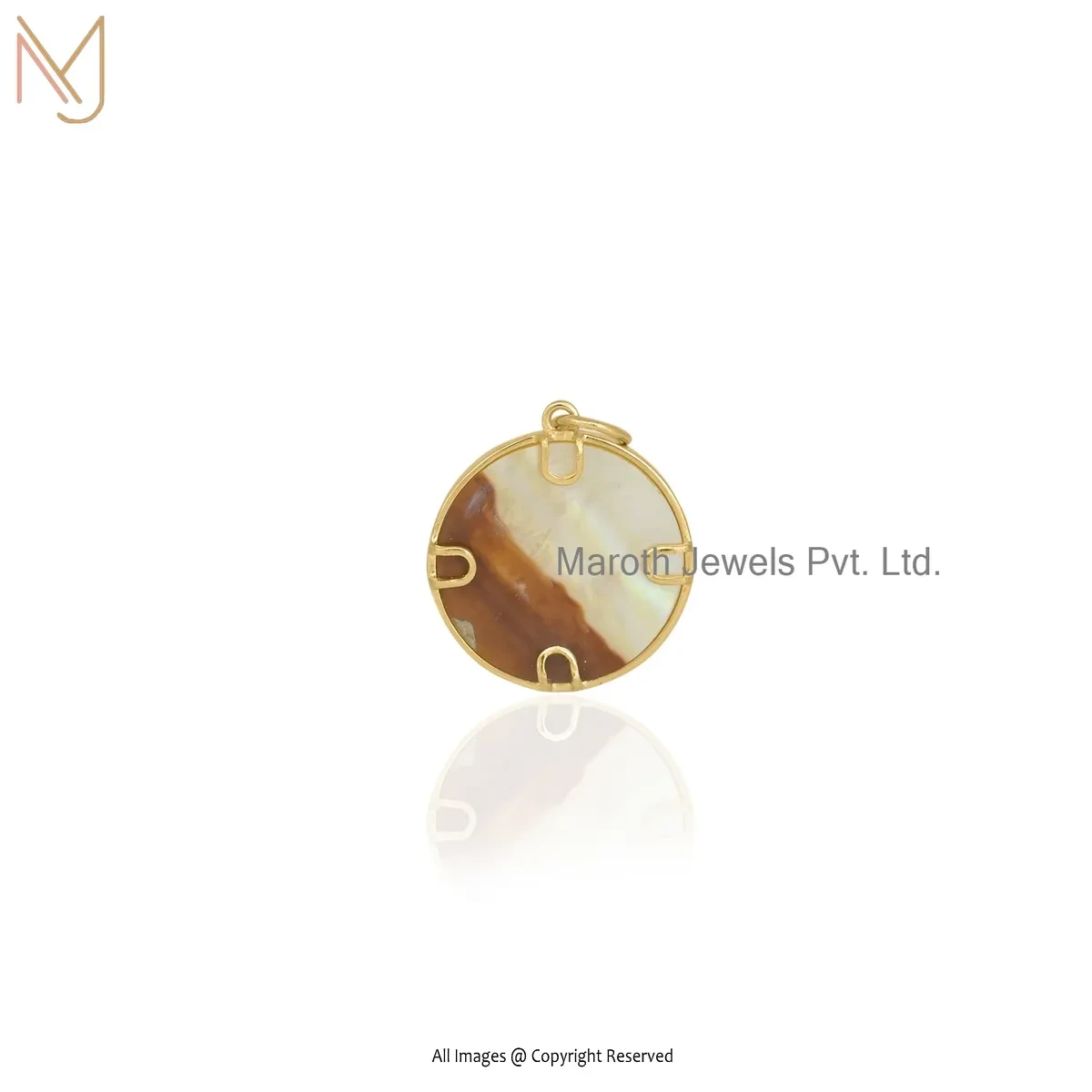 Private Lable 925 Silver Yellow Gold Plated Cubic Zircon & Mother Of Pearl Gemstone Moon Star Pendant