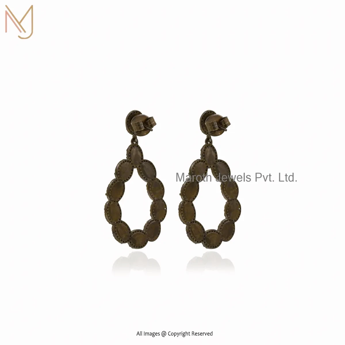 Private Lable 925 Silver Yellow Gold Plated Dimaond And Opal Gemstone Designer Drop Earring
