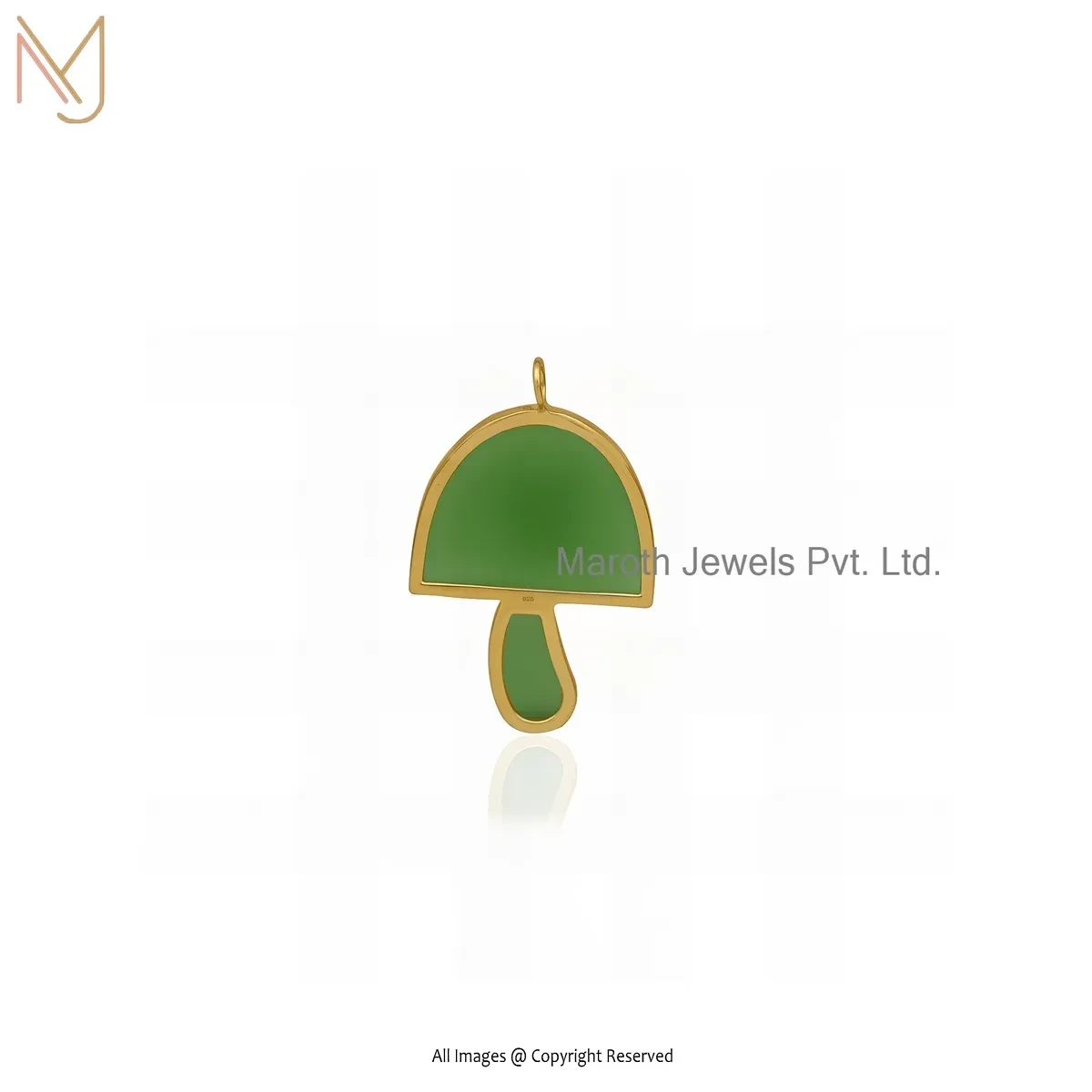 Private Lable 925 Silver Yellow Gold Plated Green Opal And Green Cubic Zircon Large Magic Mushroom Pendant