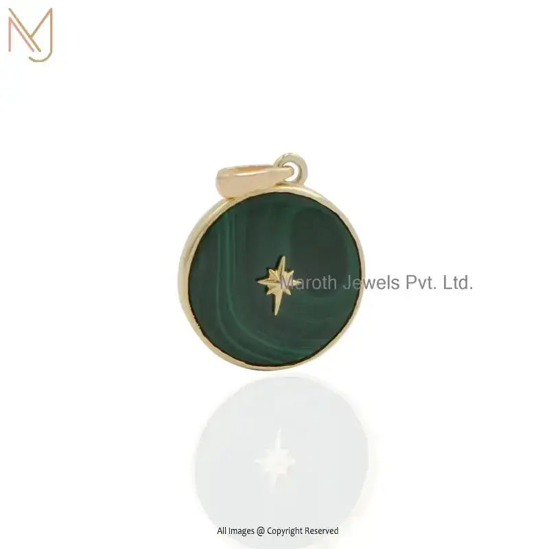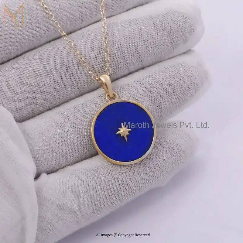 Private Lable 925 Silver Yellow Gold Plated Lapiz Luzali Gemstone Starburst Disc Pendant