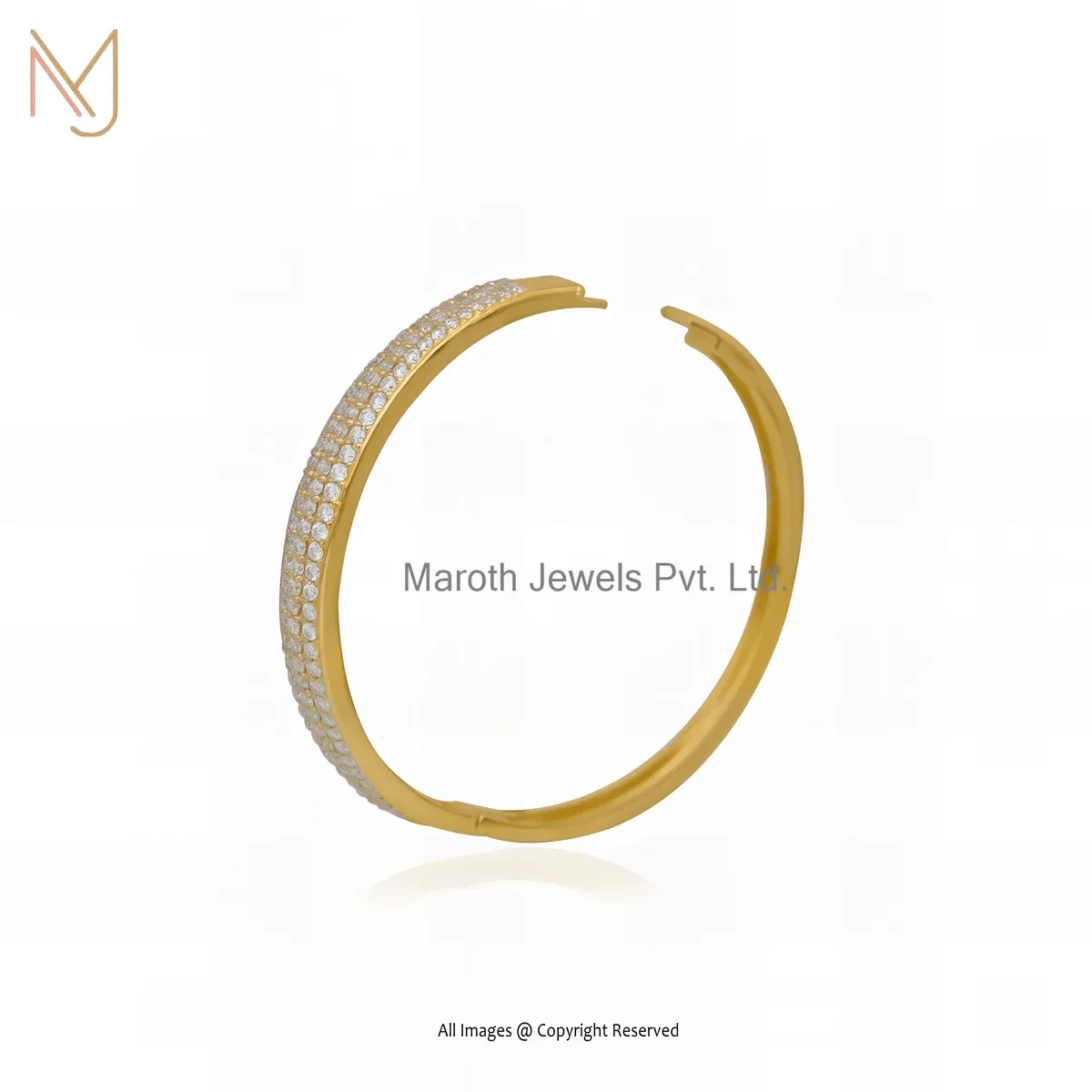 Private Lable 925 Silver Yellow Gold Plated Moissanite Statement Diamond | Triple Row Diamonds Bangle