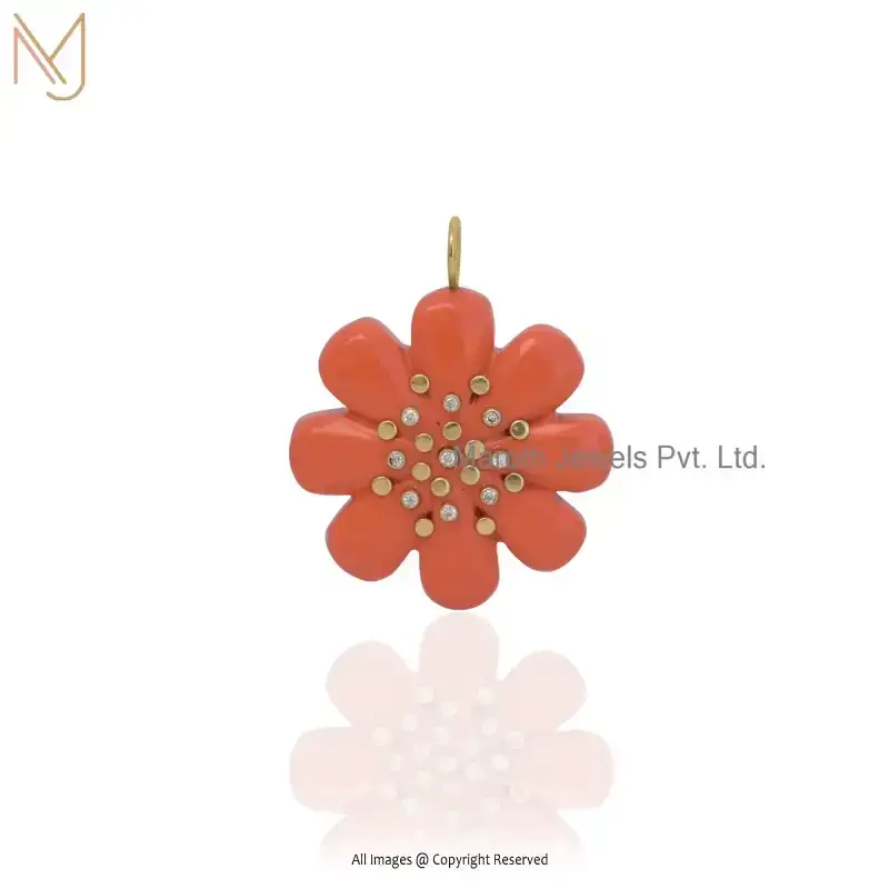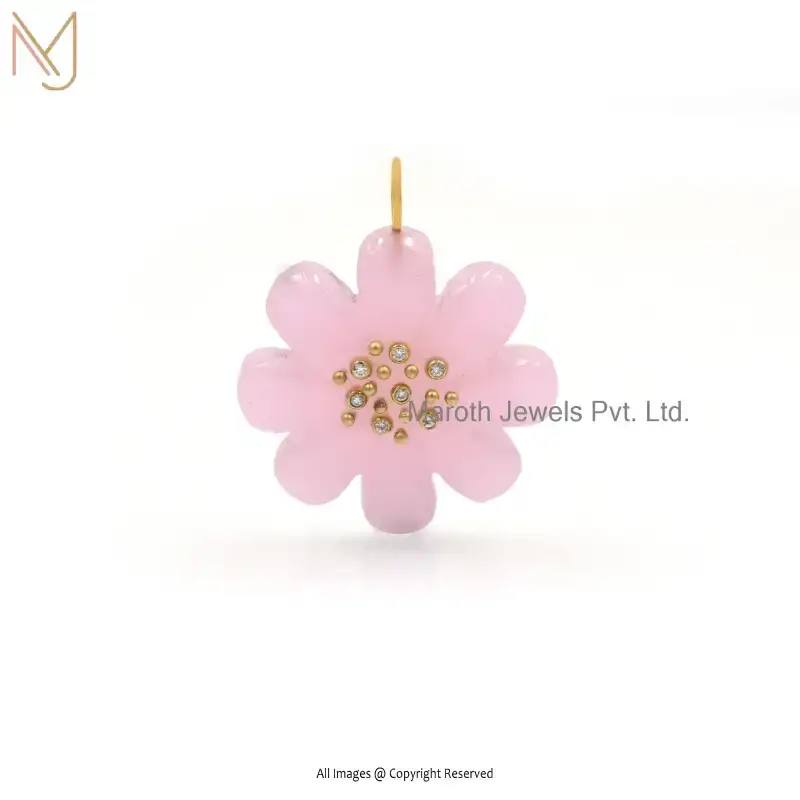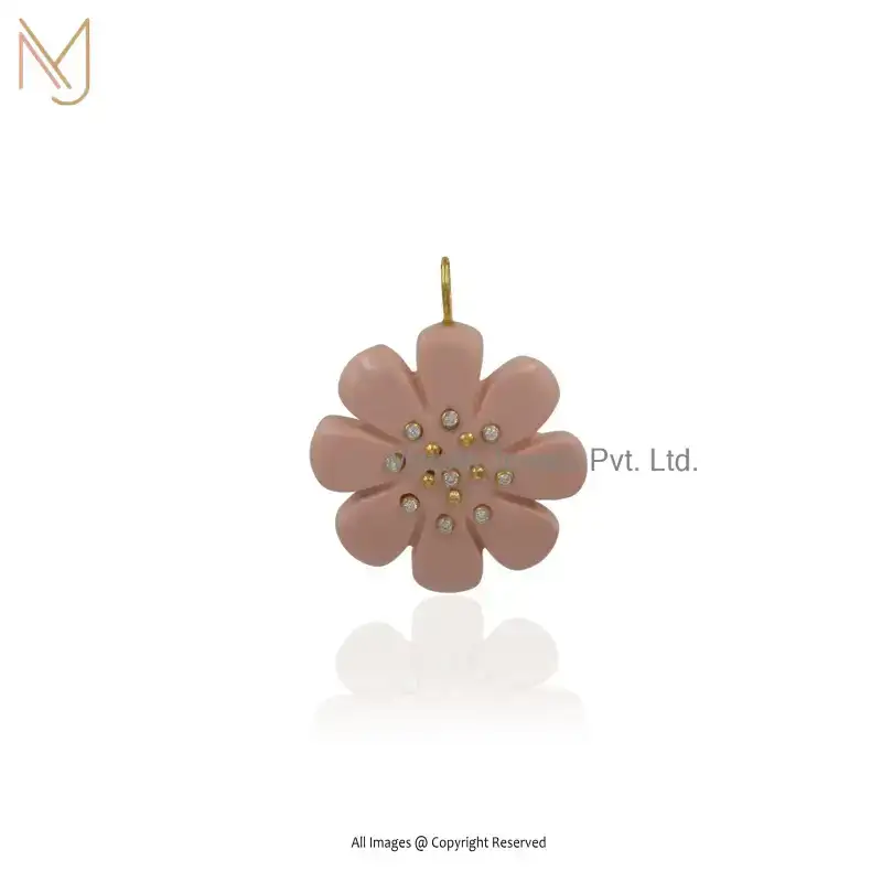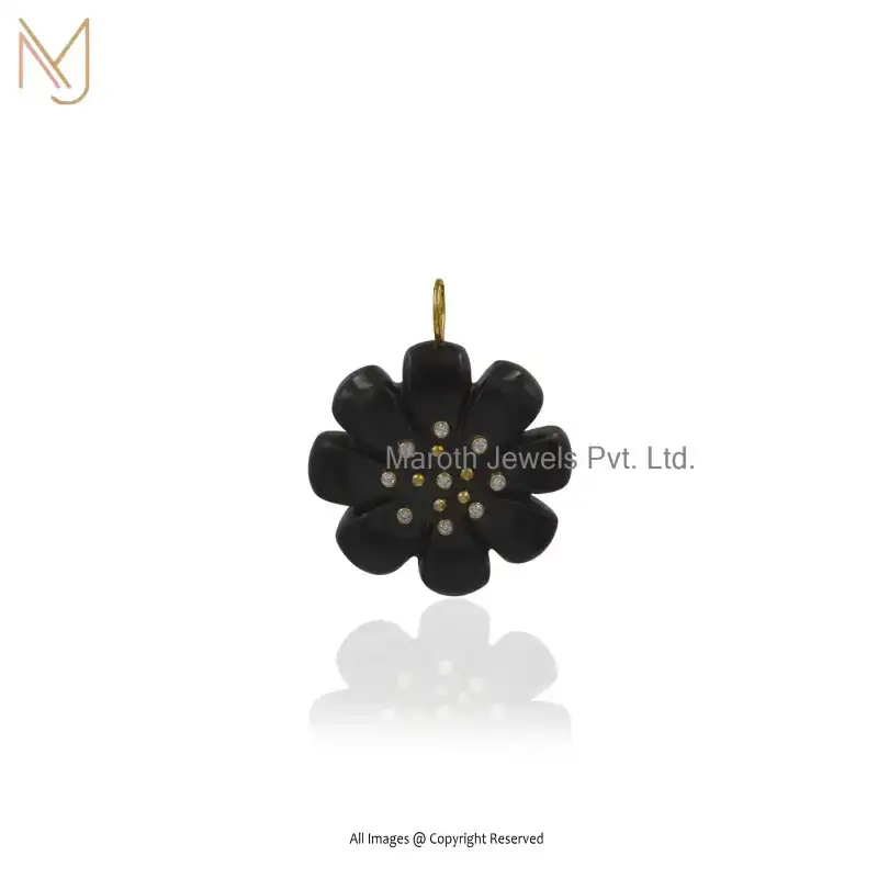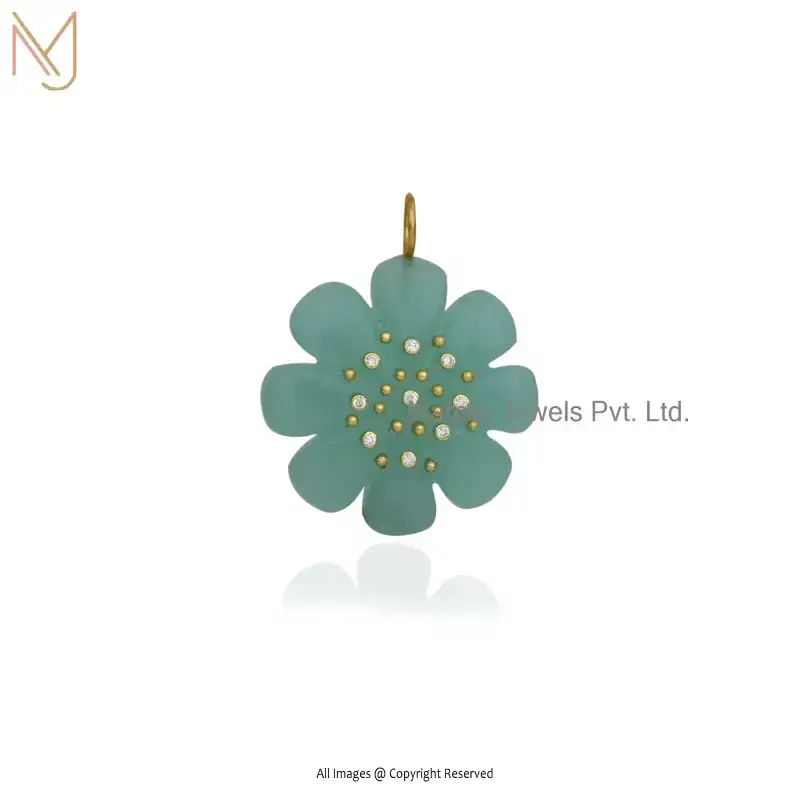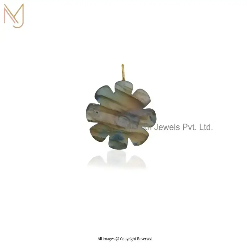 Private Lable 925 Silver Yellow Gold Plated Moonstone And White Cubic Zircon Flower Charm Gemstone Pendant