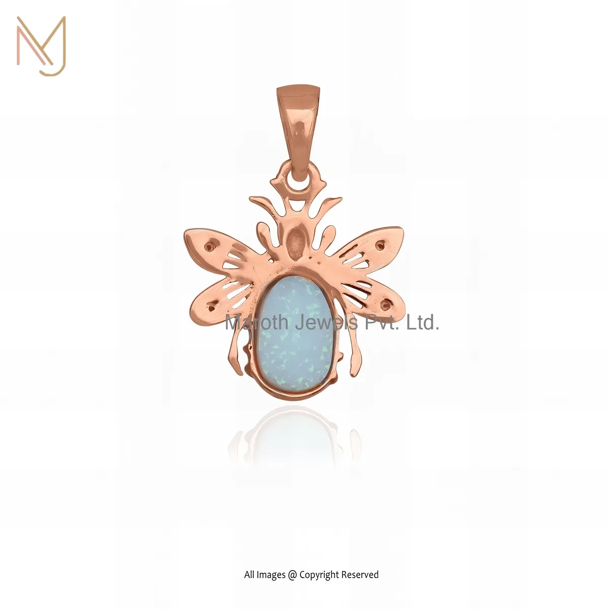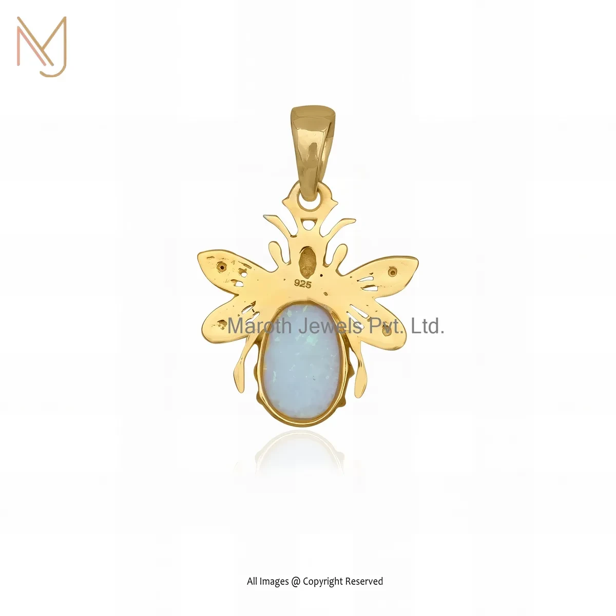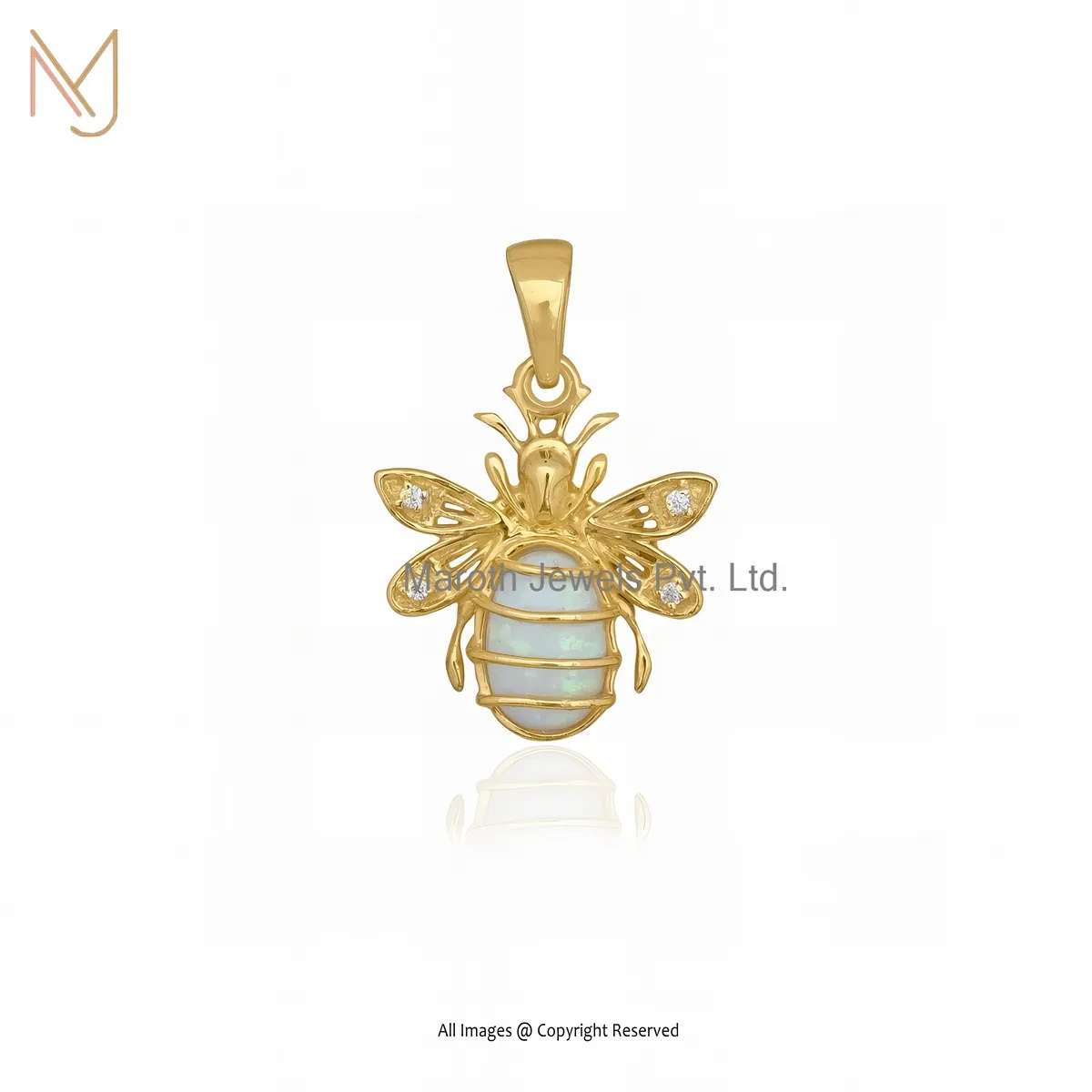 Private Lable 925 Silver Yellow Gold Plated Mossanite & Ethiopian Opal Gemstone Bee Charm Pendant