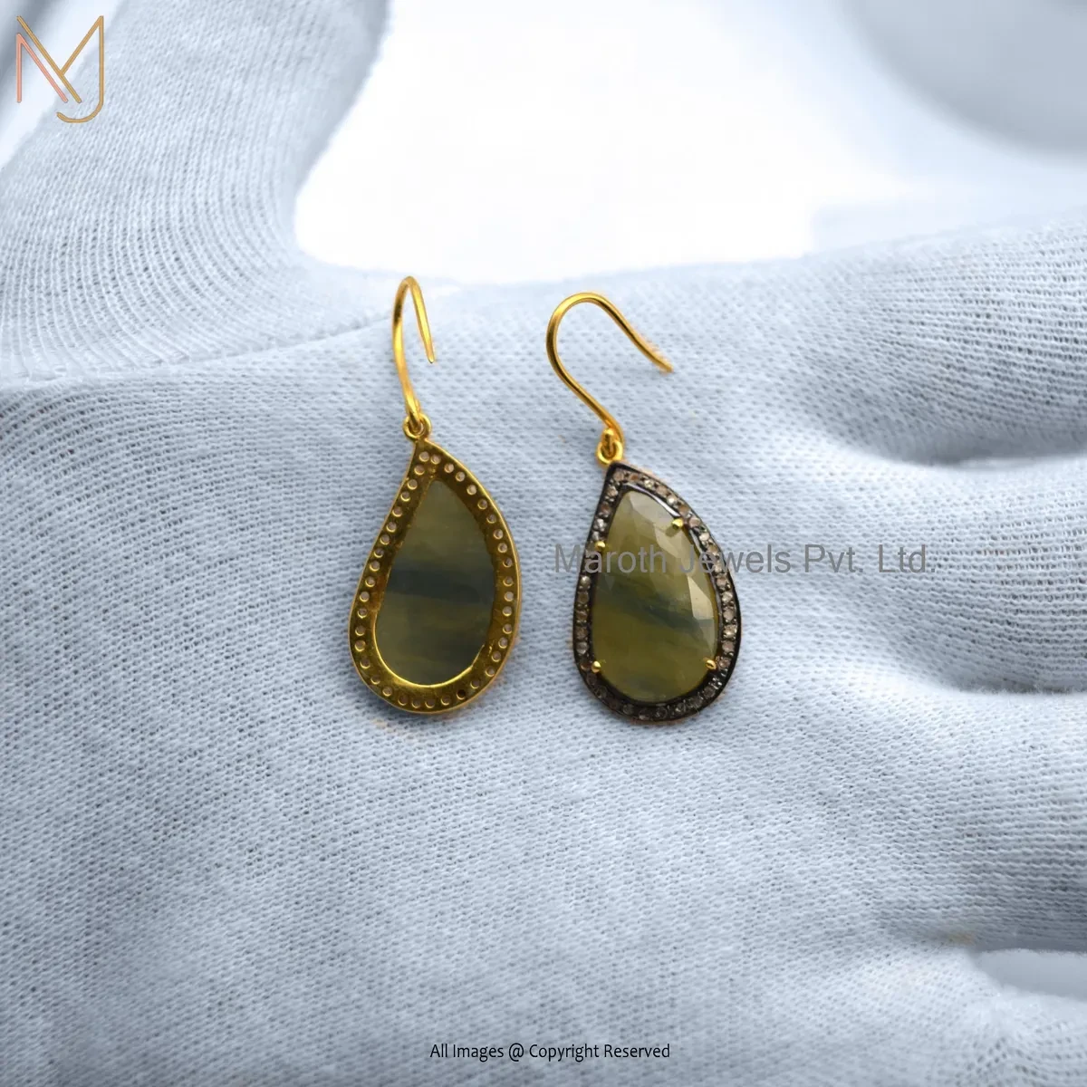 Private Lable 925 Silver Yellow Gold Plated Pave Diamond And Yellow Sapphire Gemstone Dangle Earring