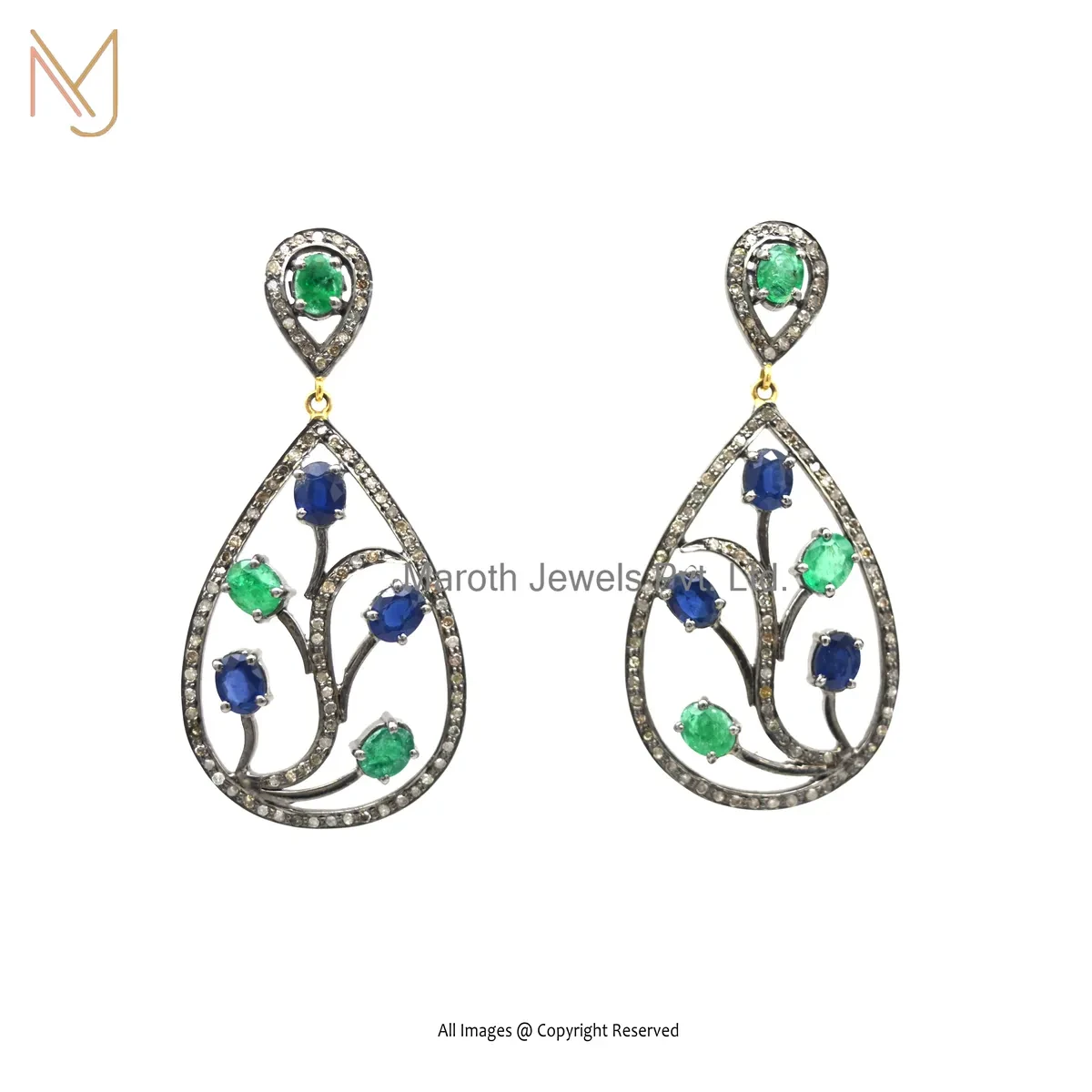 Private Lable 925 Silver Yellow Gold Plated Pave Diamond ,Emerald , Blue Sapphire Drop Earring