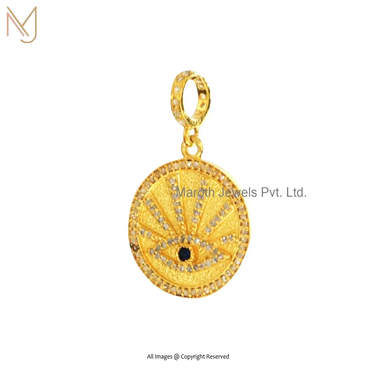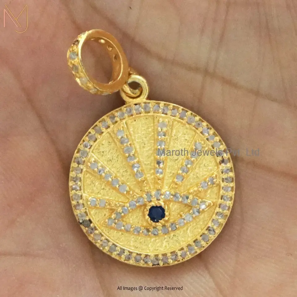 Private Lable 925 Silver Yellow Gold Plated Pave Diamond Evil Eye Sunbeam Medallion Pendant