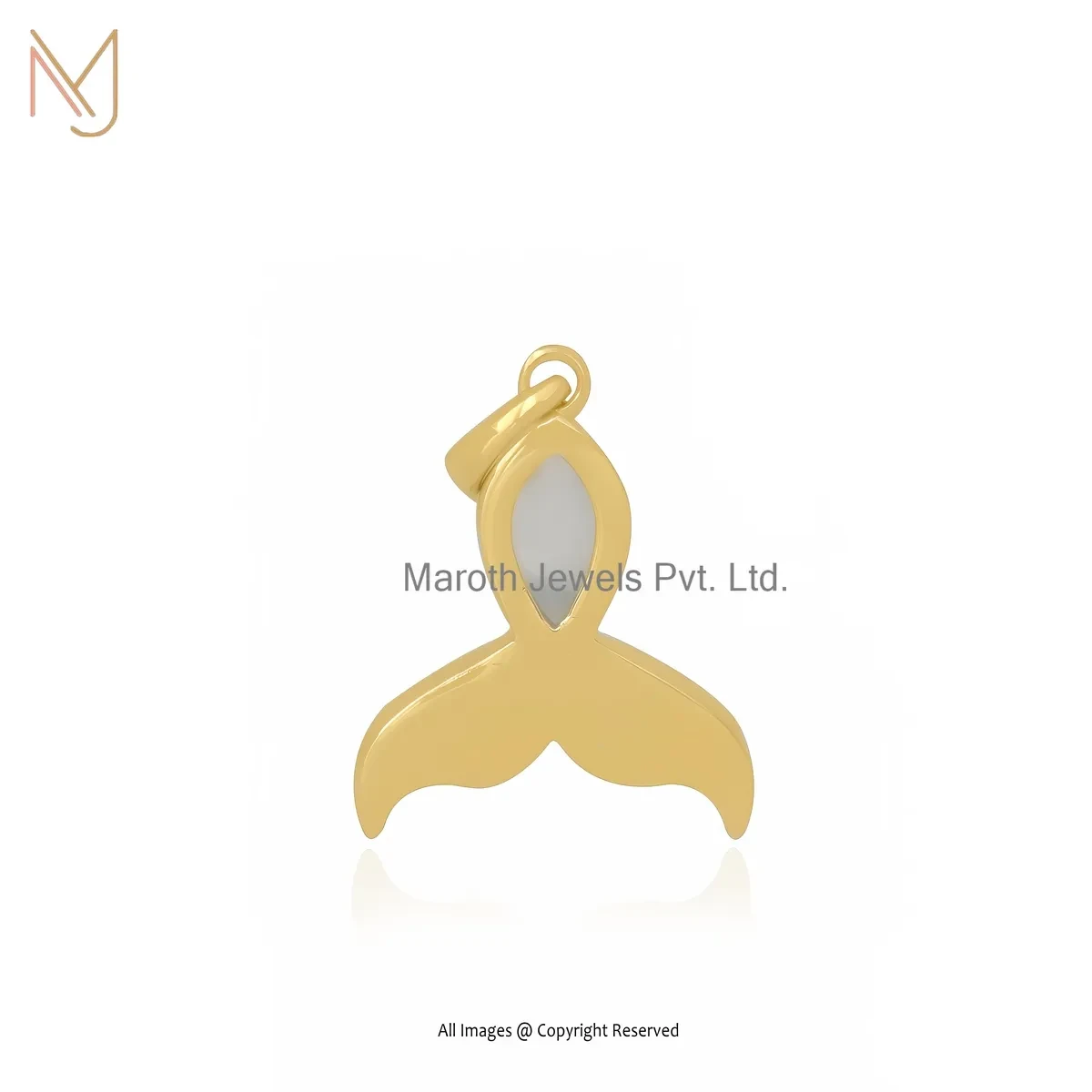 Private Lable 925 Silver Yellow Gold Plated Rainbow Moonstone Whale Tail Pendant