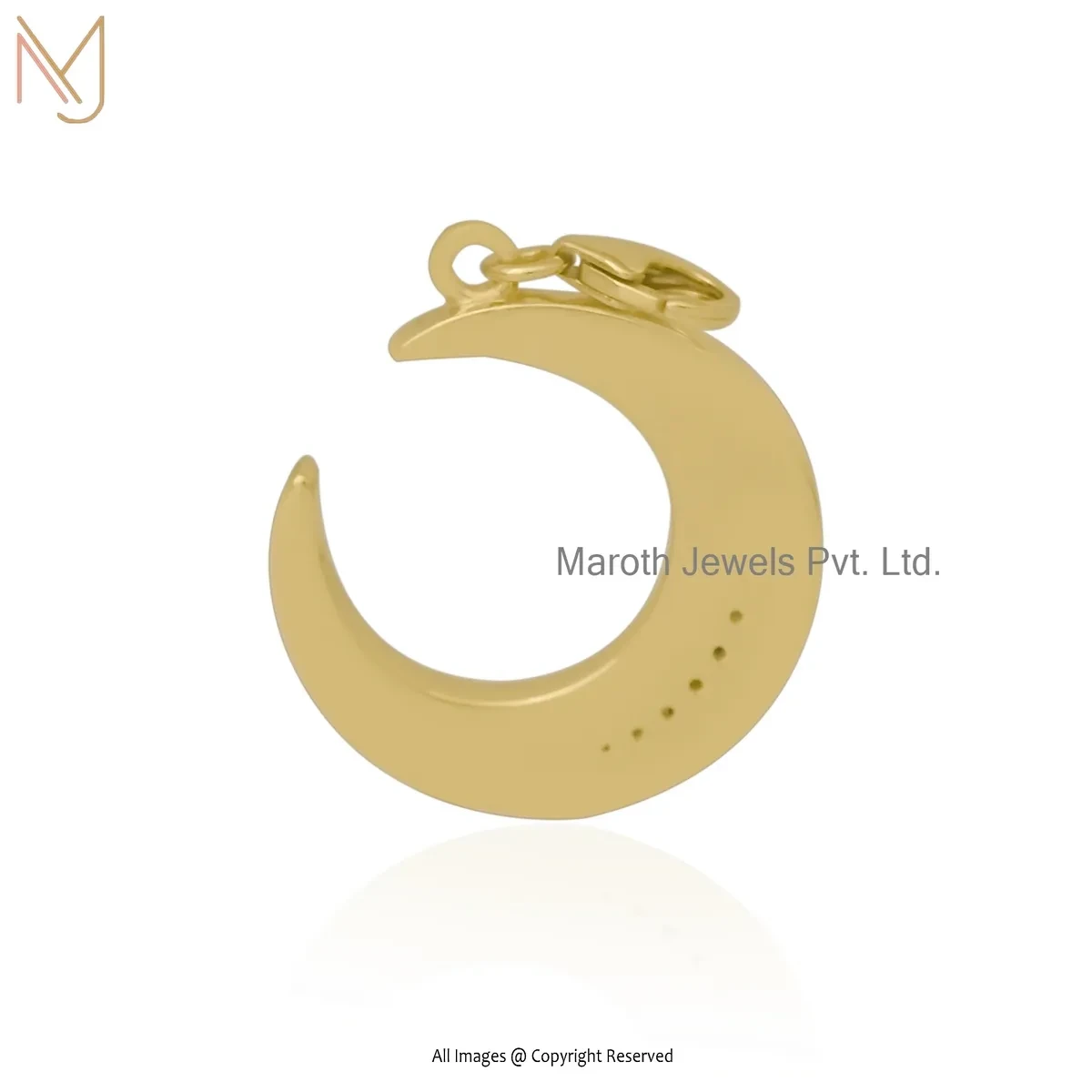 Private Lable 925 Silver Yellow Gold Plated Red Coral And Moissanite Moon Pendant