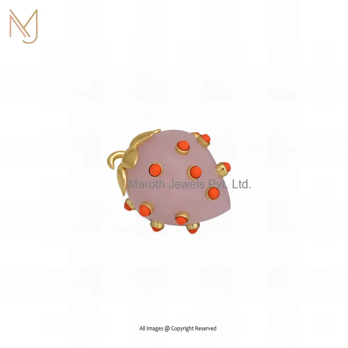 Private Lable 925 Silver Yellow Gold Plated Rose Quartz And Orange Coral Strawberry Pendant