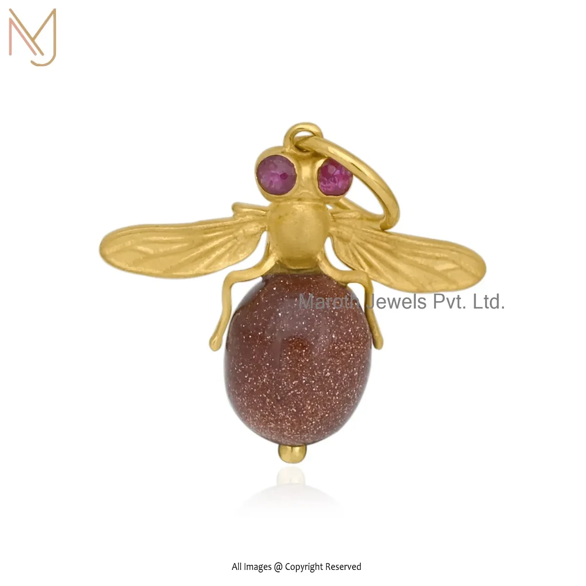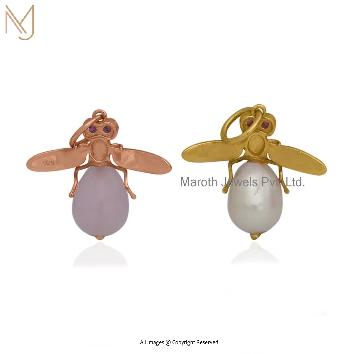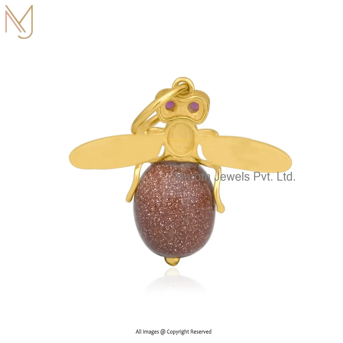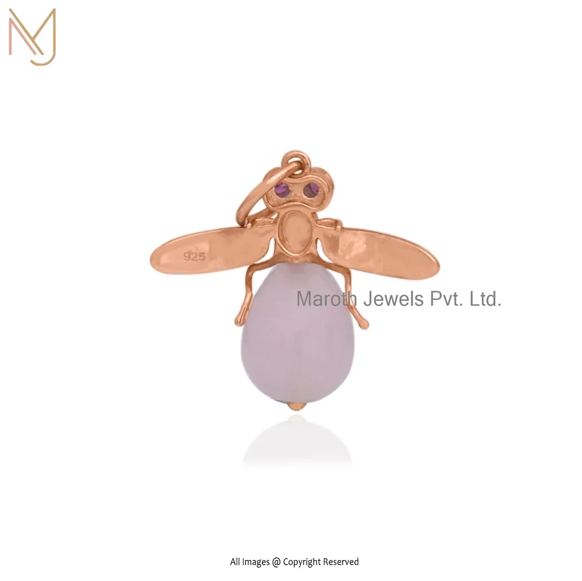 Private Lable 925 Silver Yellow Gold Plated Ruby Cubic Zircon & Rose Quartz Bee Pendant