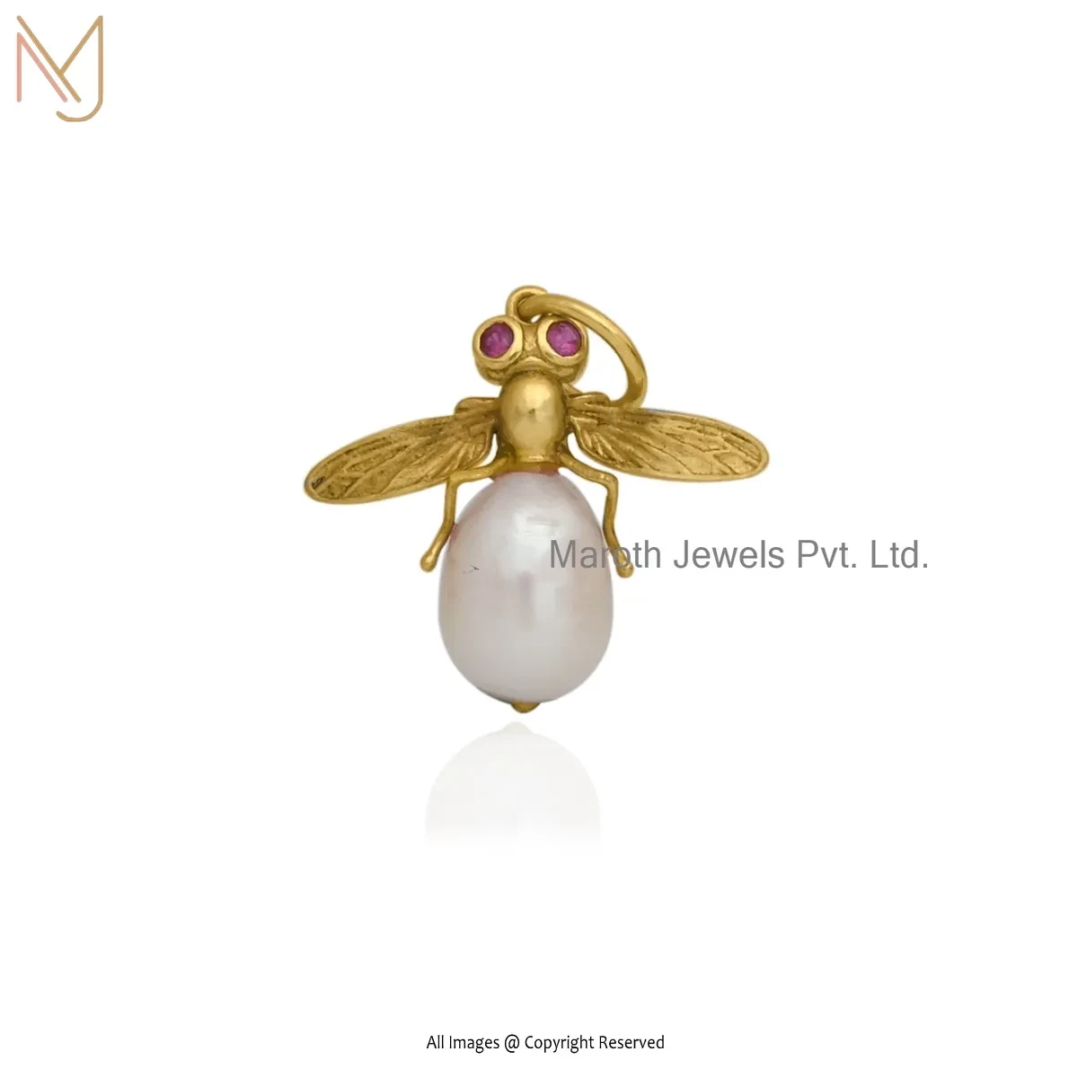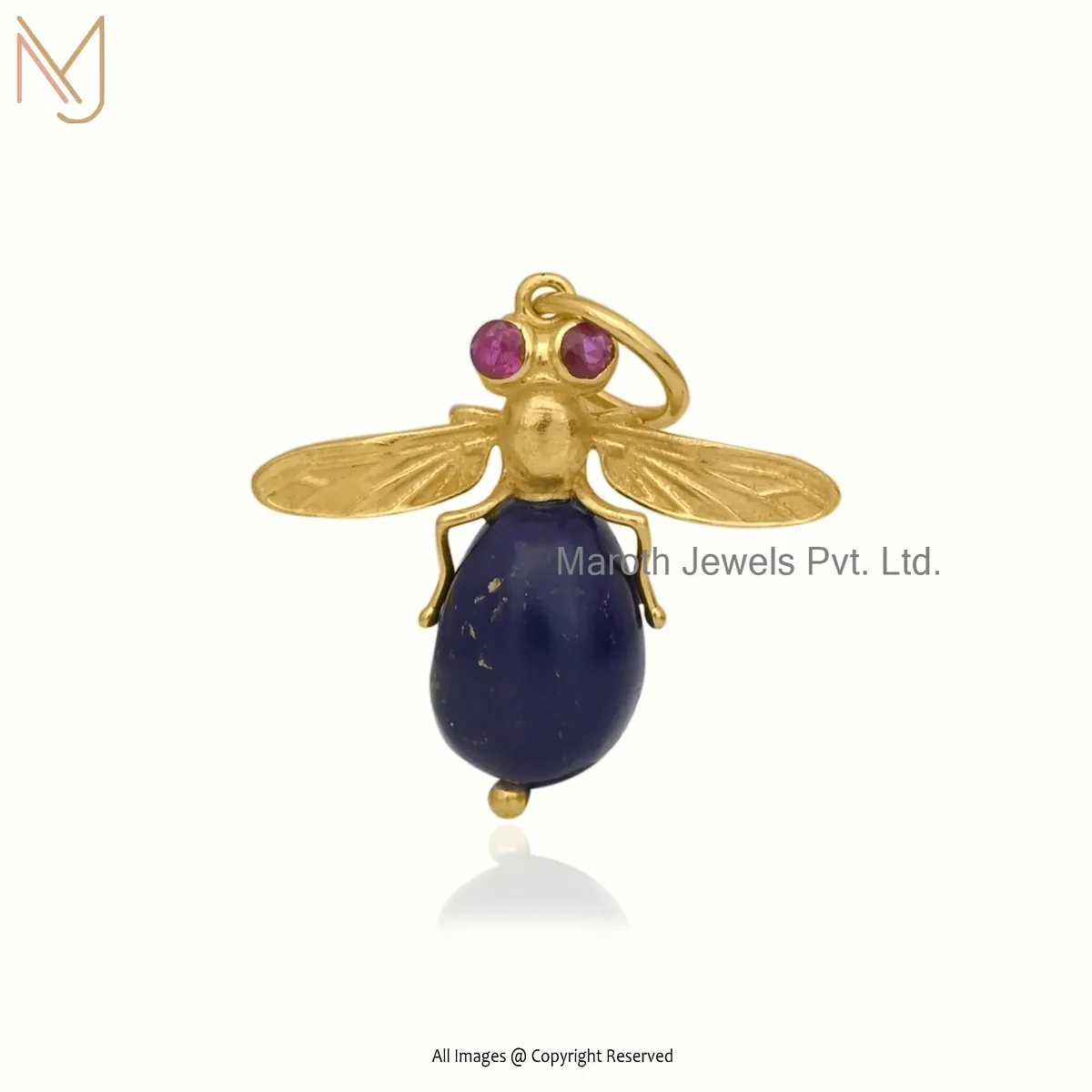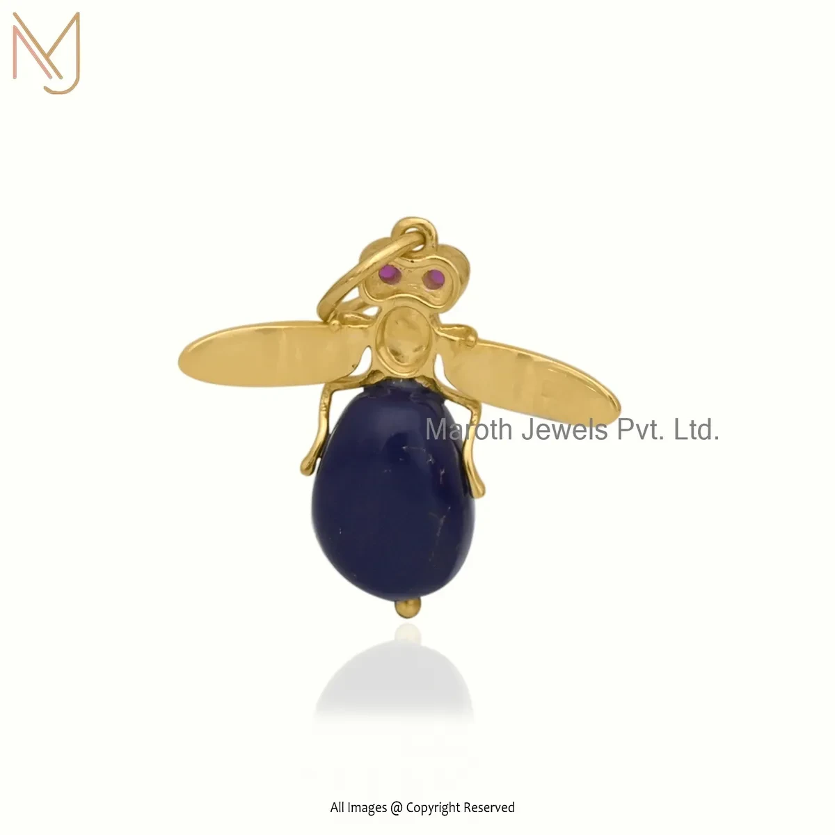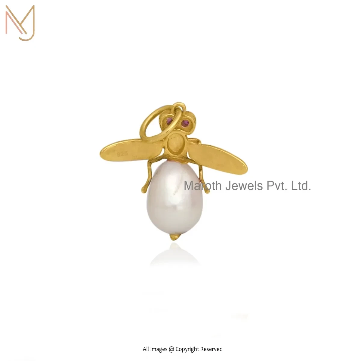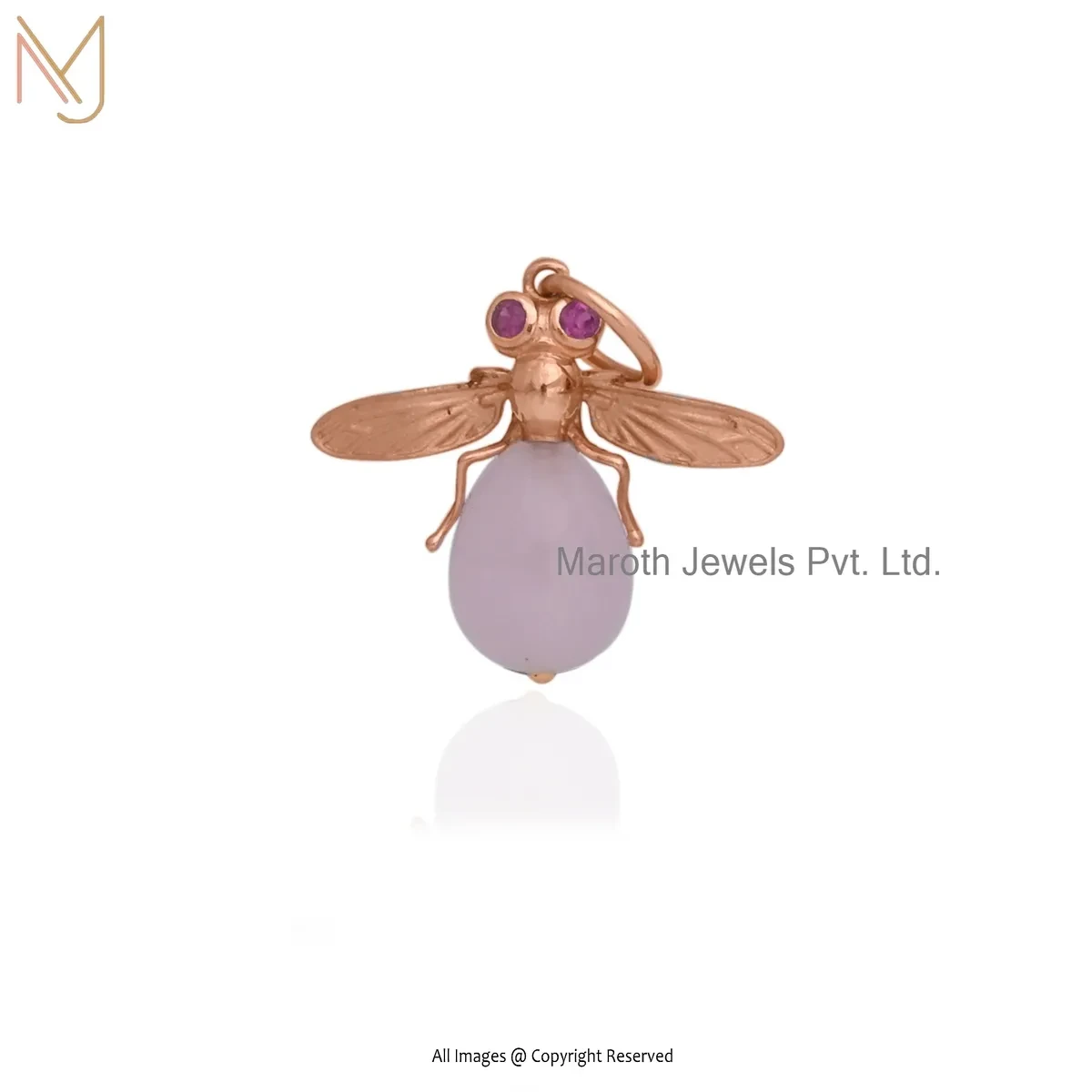 Private Lable 925 Silver Yellow Gold Plated Ruby Cubic Zircon & Rose Quartz Bee Pendant