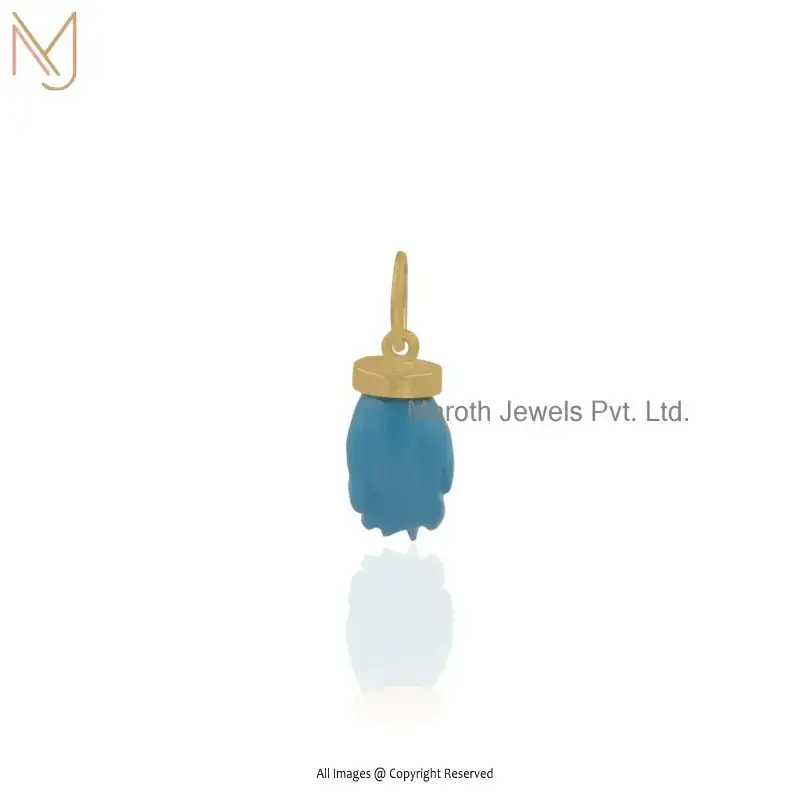 Private Lable 925 Silver Yellow Gold Plated Turquoise Gemstone Figa Hand Symbol Pendant