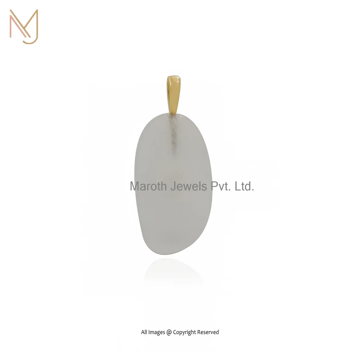 Private Lable 925 Silver Yellow Gold Plated White Agate & Cubic Zircon Teardrop Pendant