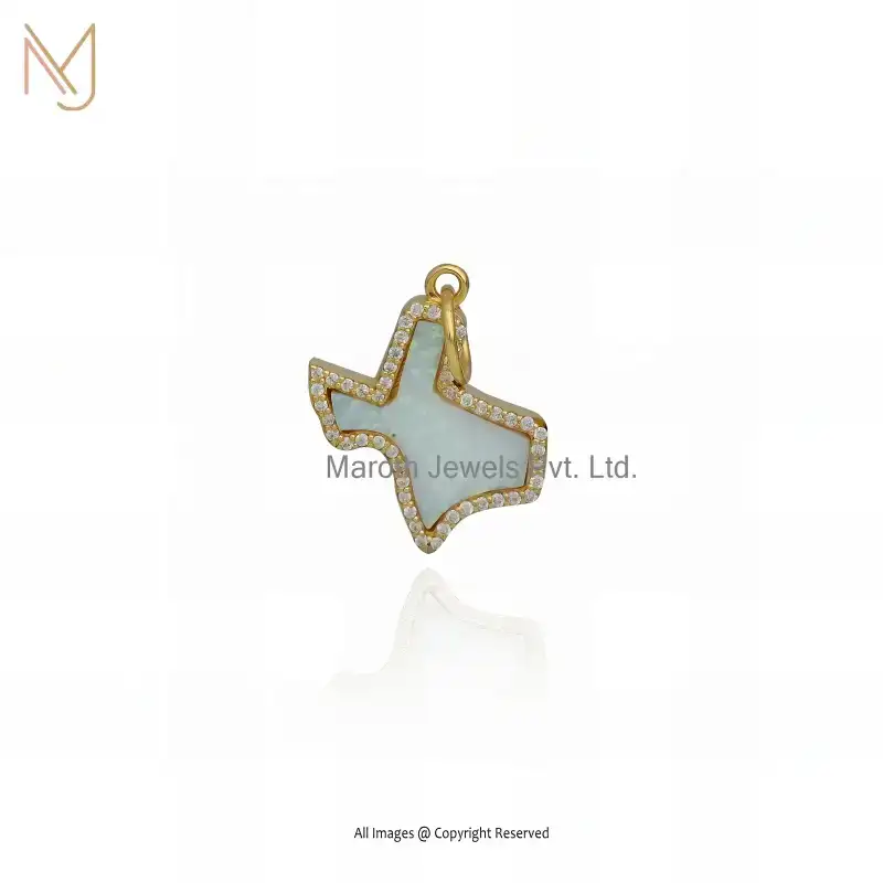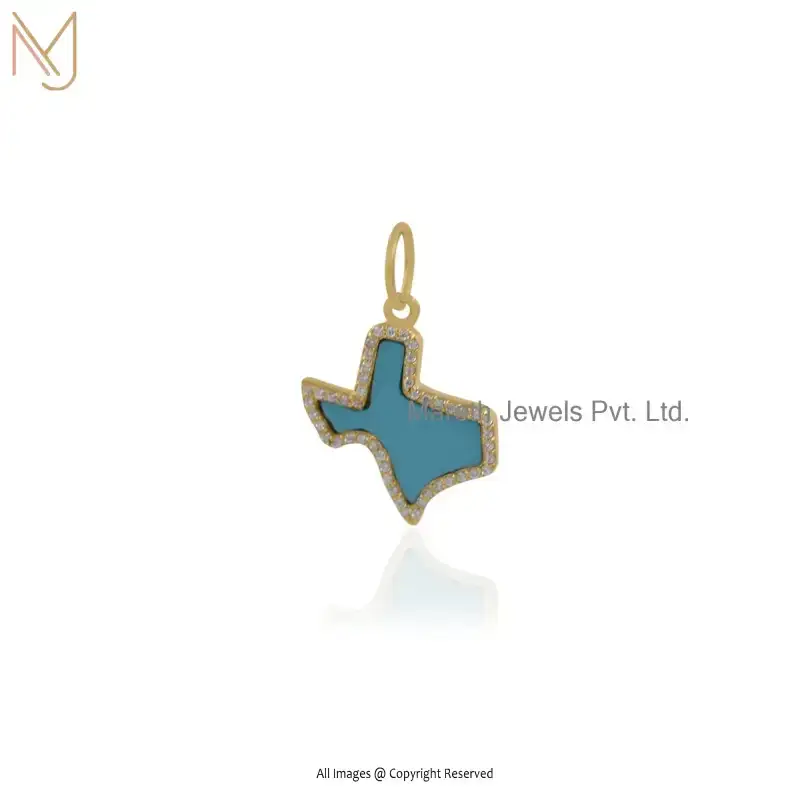 Private Lable 925 Silver Yellow Gold White Coral And Moissanite Tiny Texas State Map Pendant