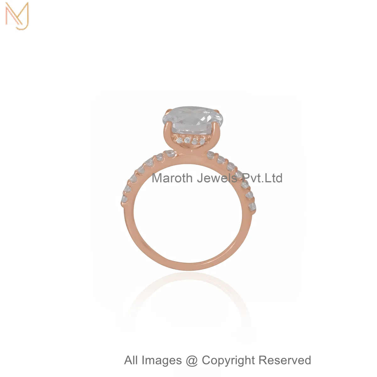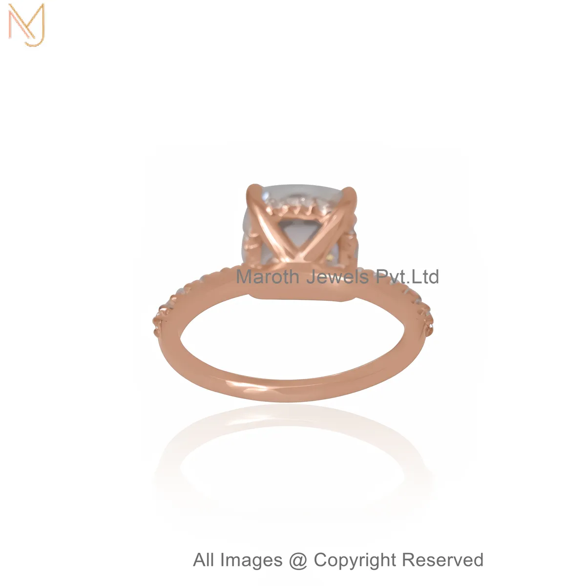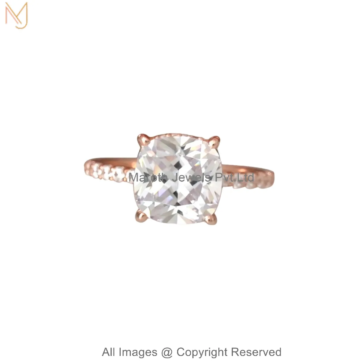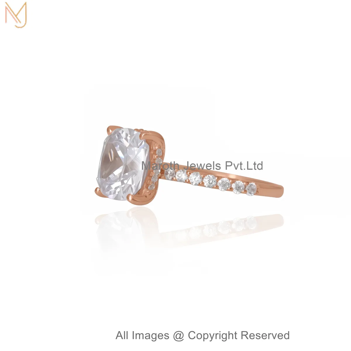 Private Lable 925 Sterling Silver Rose Gold Plated Cushion Cut Solitaire Ring with Accent Stones - Elegant Minimalist Statement Ring