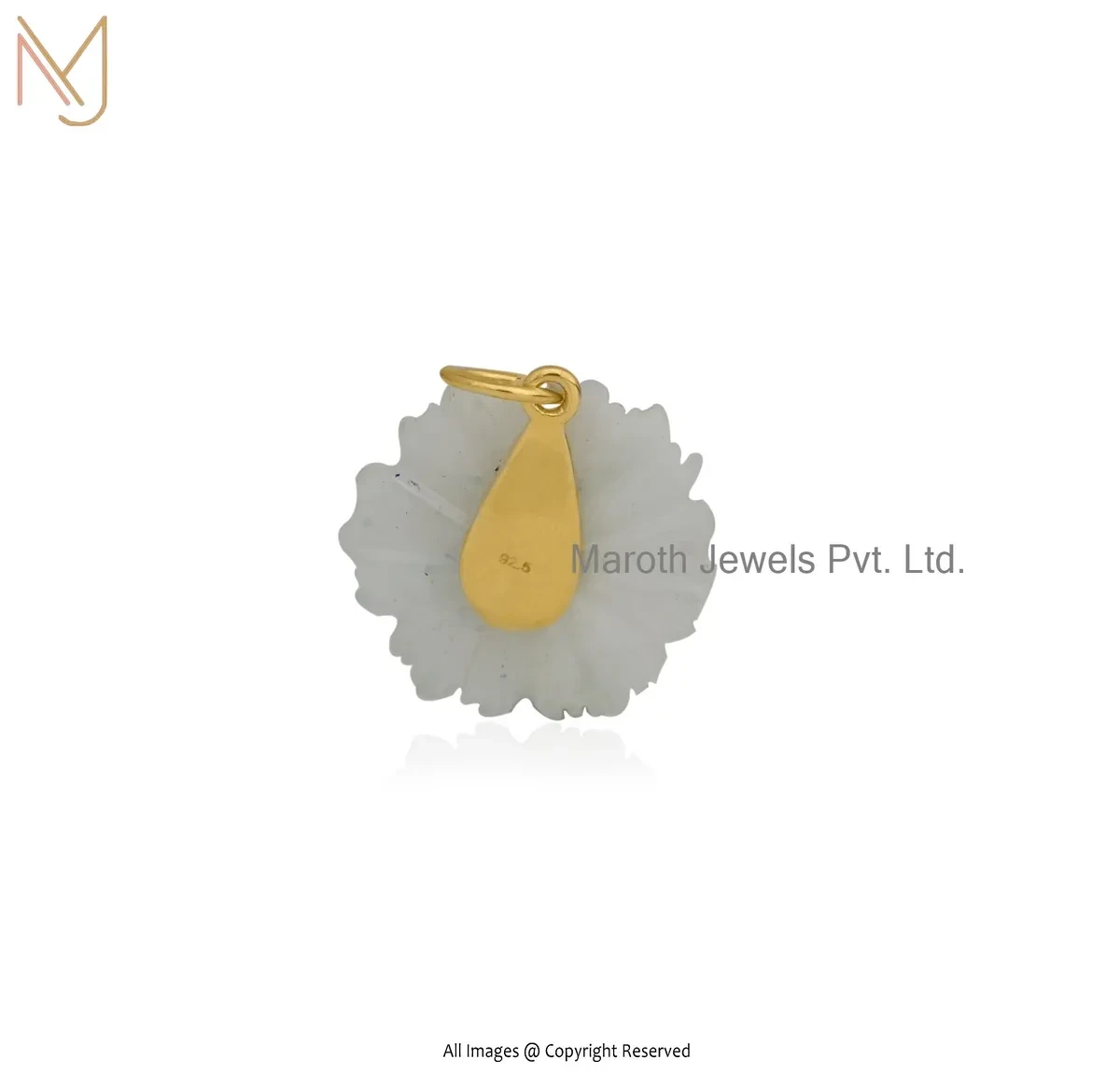 Private Lable 925 Sterling Silver Yellow Gold Plated Cubic Zircon & Moonstone Gemstone Flower Pendant