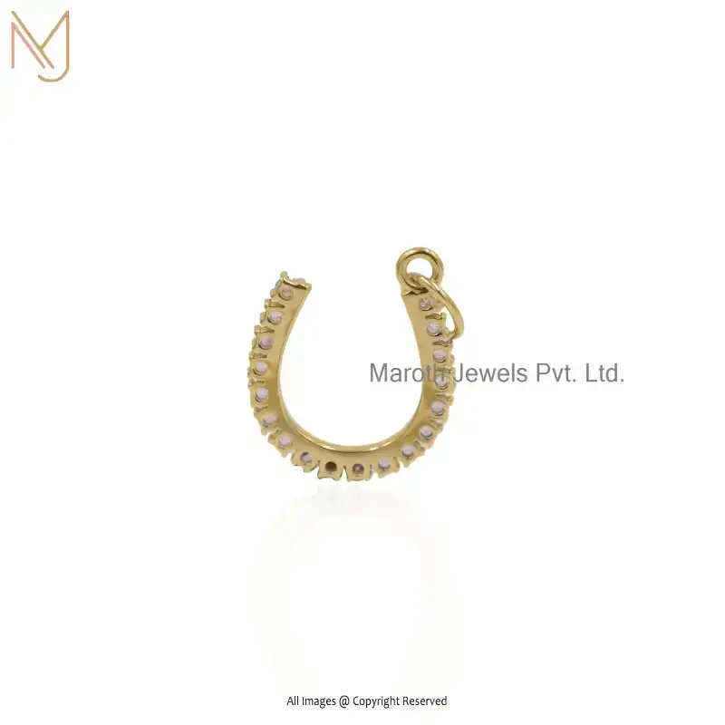 Private Lable 925 Sterling Silver Yellow Gold Plated Diamond Pink Sapphier Horseshoe Charm Pendant