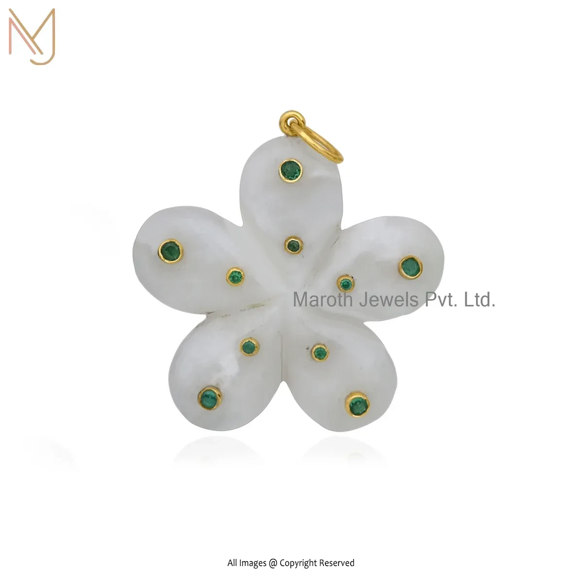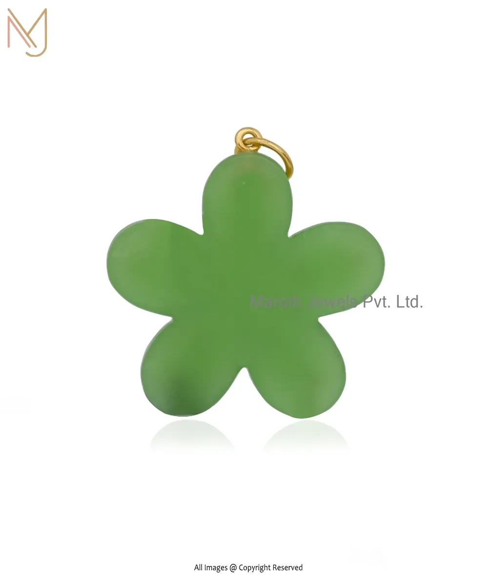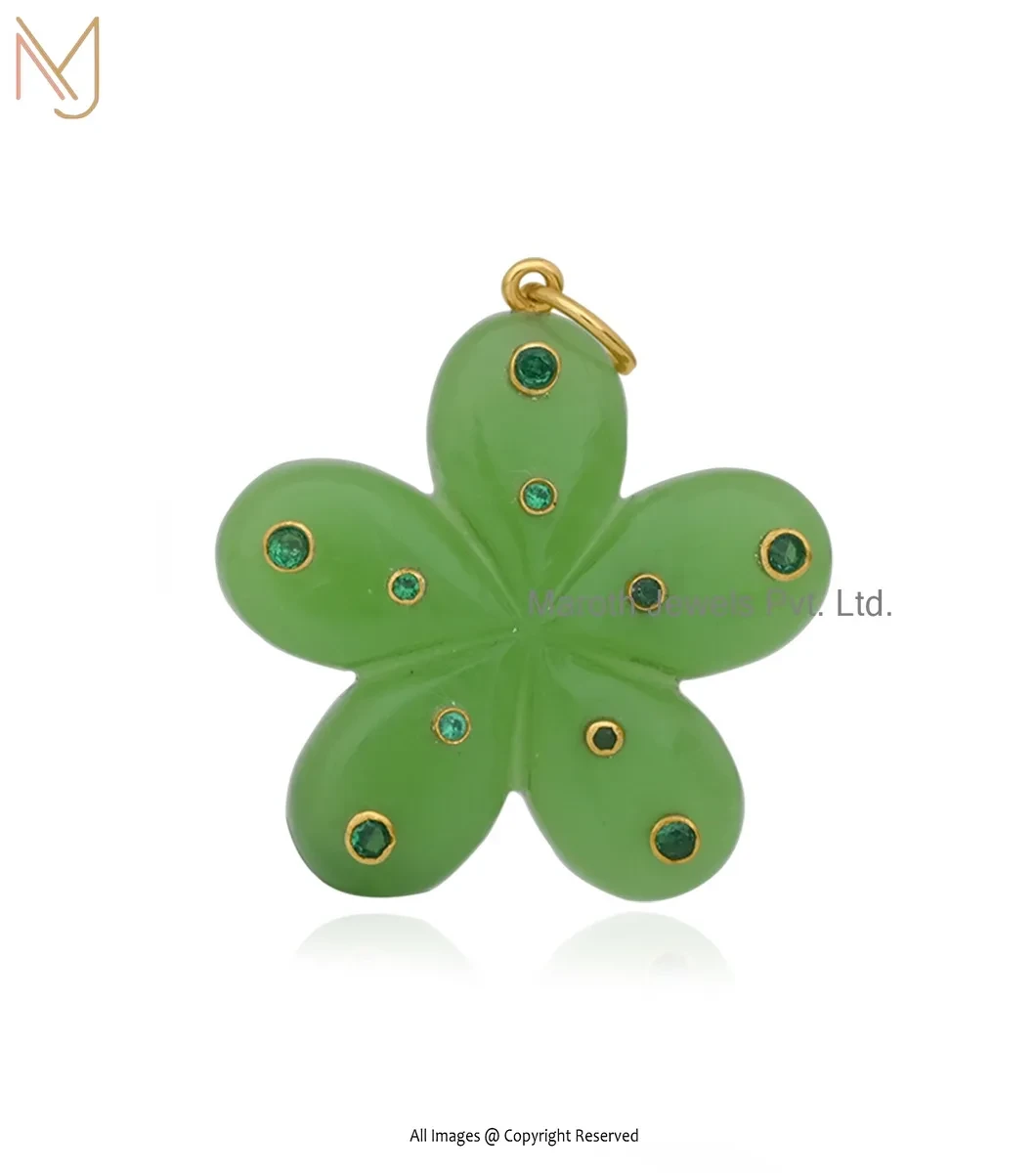 Private Lable 9K Yellow Gold Pink Opal And Ruby CZ Flower Pendant