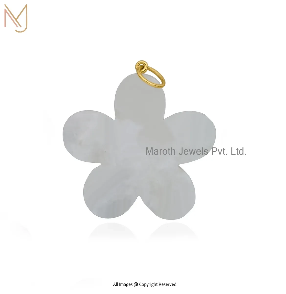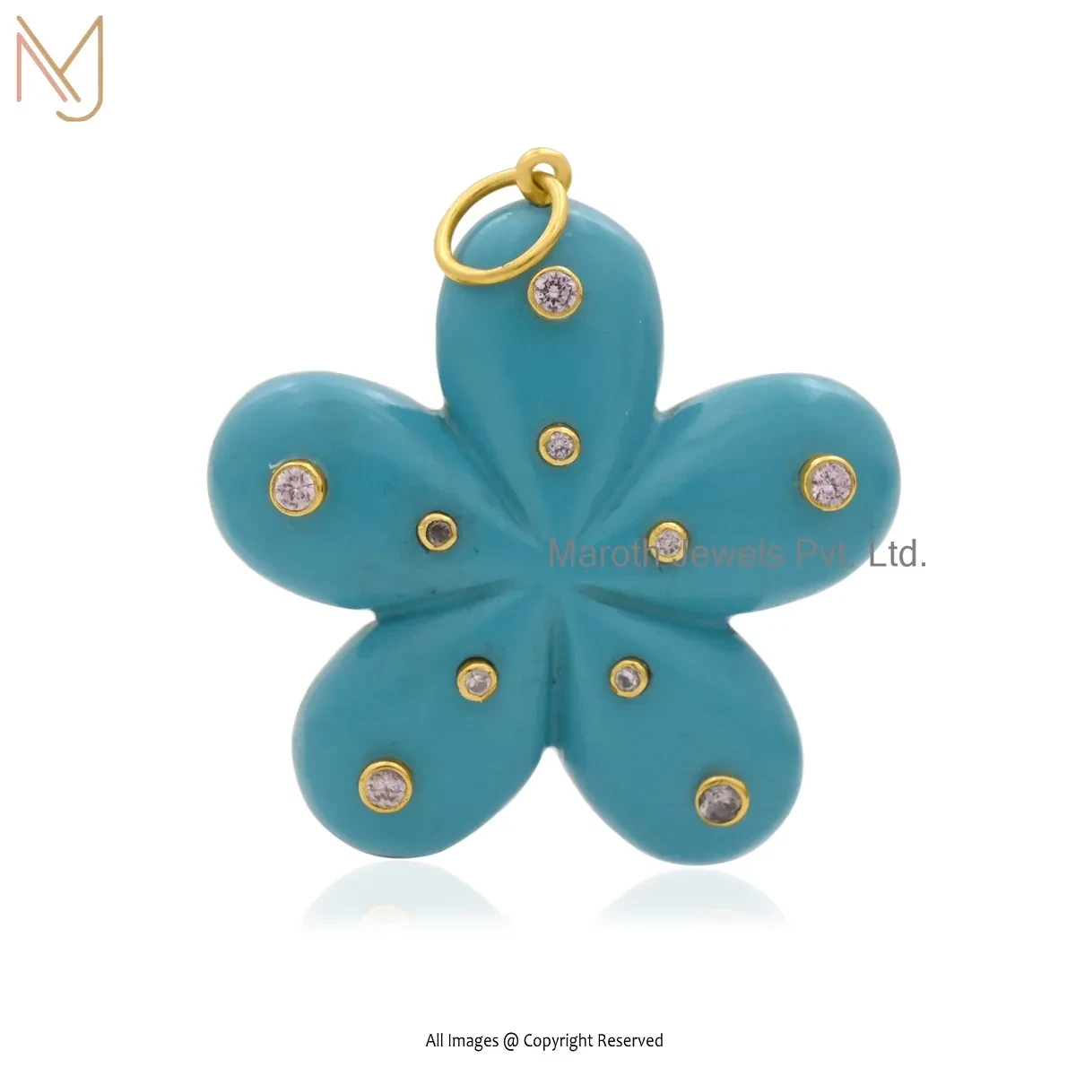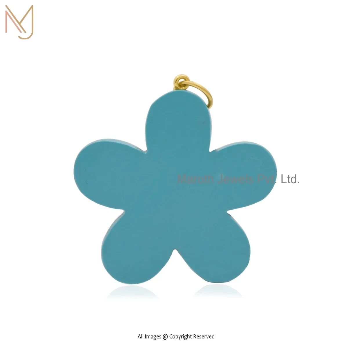 Private Lable 9K Yellow Gold Pink Opal And Ruby CZ Flower Pendant