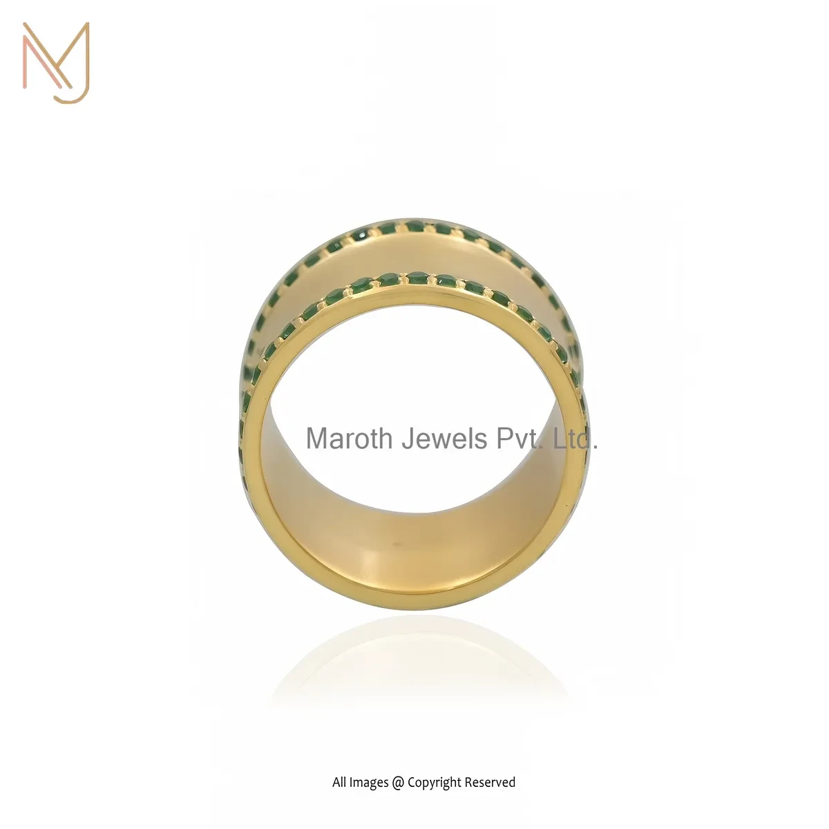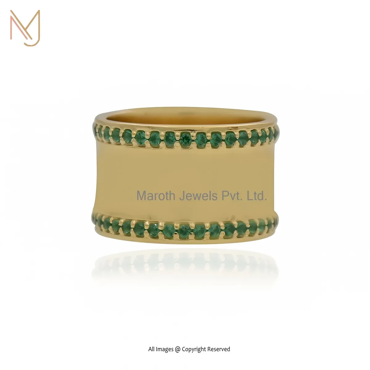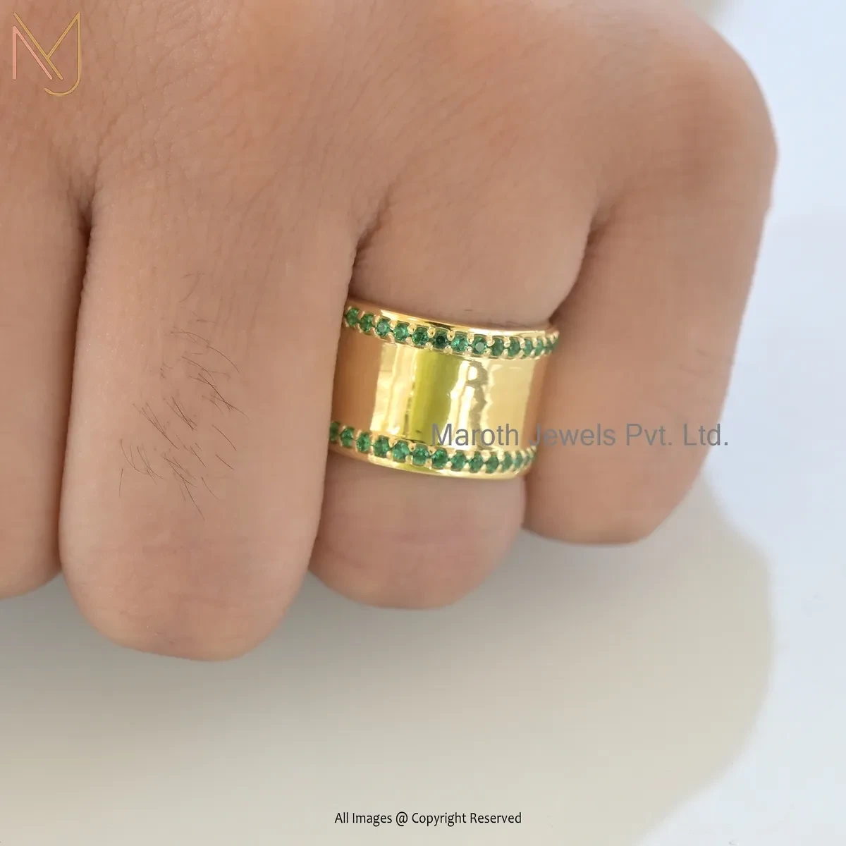 Privtae Lable 14K Yellow Gold Emerald Cubic Zircon Cigar Band Ring