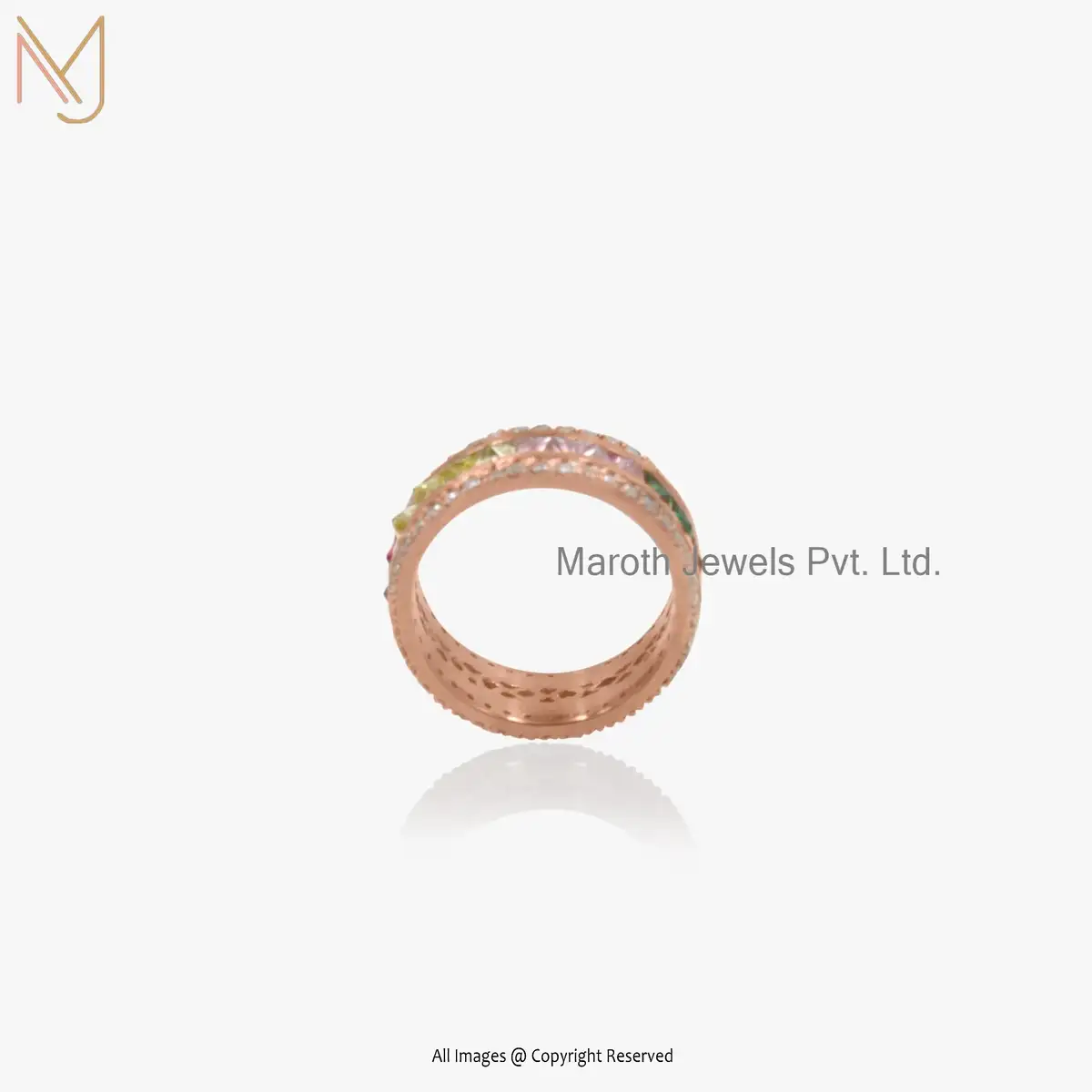 Wholesale 14K Rose Gold Plated Moissanite Multi Color Stone Band Ring
