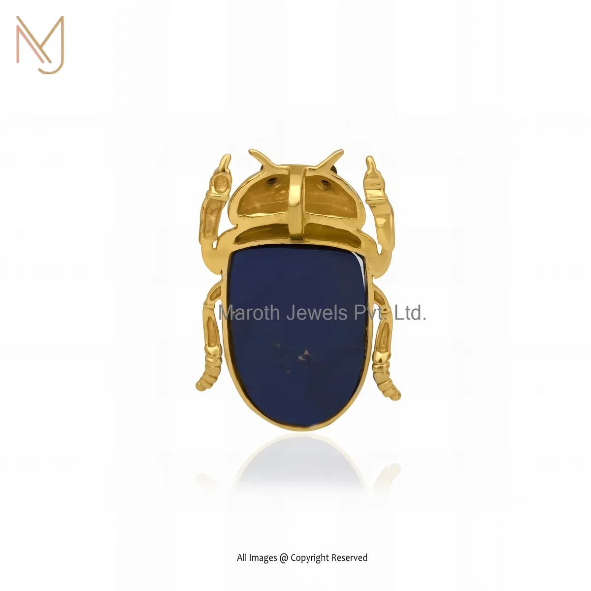 Wholesale 14K Soild Yellow Gold Lapiz Lazuli And Black Spinel Scarab Pendant