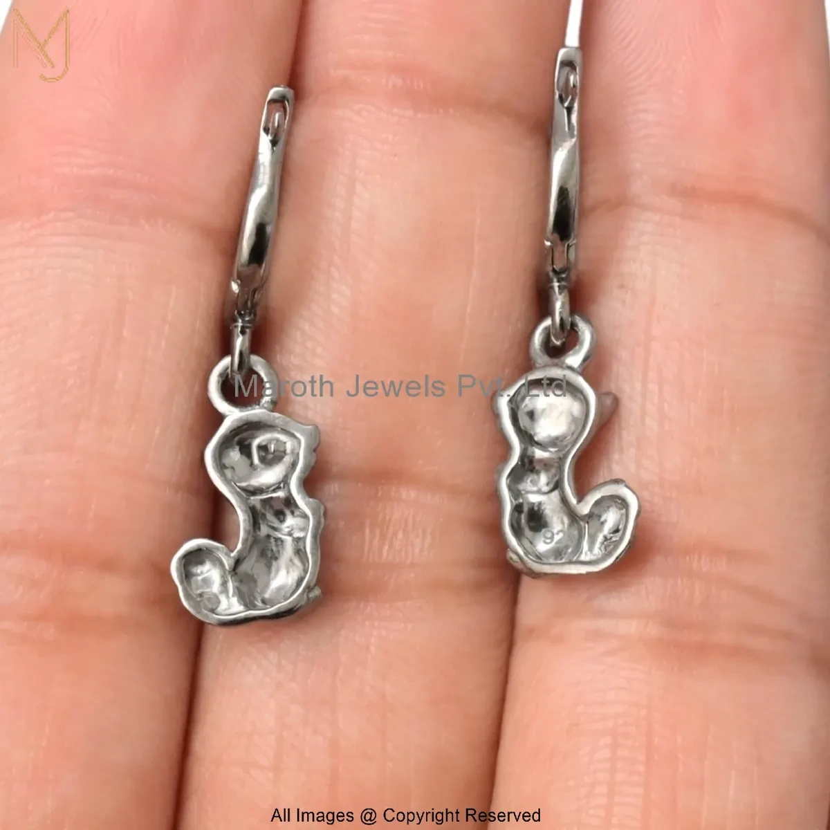 Wholesale 14K White Gold Diamond Black Cubic Zircon Cute Squirrel Charm Hoop Earrings
