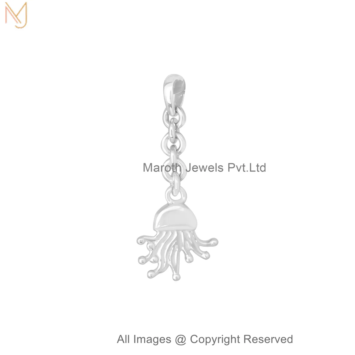 Wholesale 14K White Gold Ocean Drift Jellyfish Charm Pendant | Minimal Ocean Jewelry