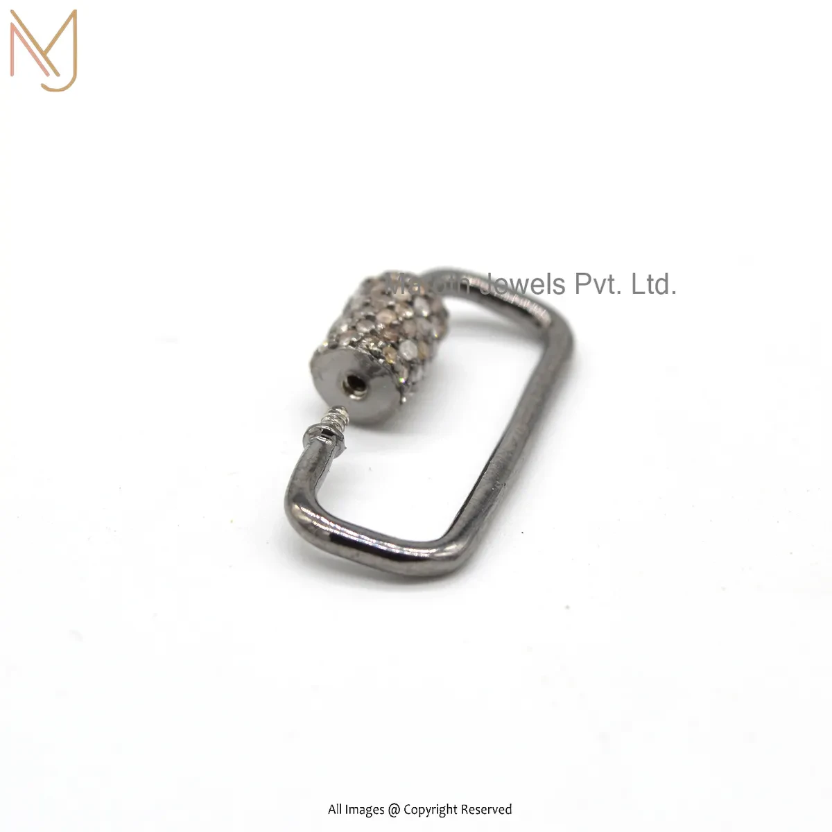 Wholesale 14K White Gold Pave Diamond Carabiner Lock Jewelry