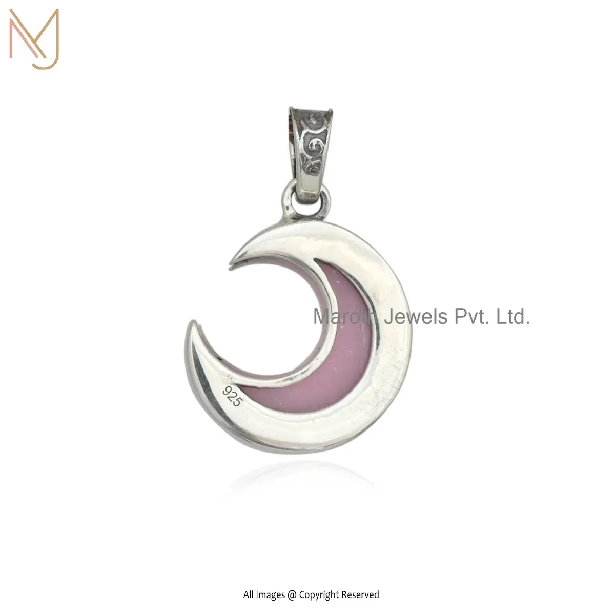 Wholesale 14K White Gold Pink Opal Gemstone Half Moon Charm Pendant