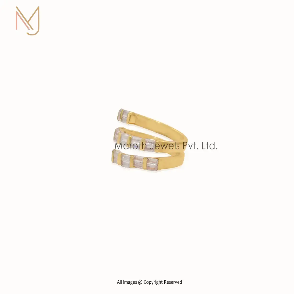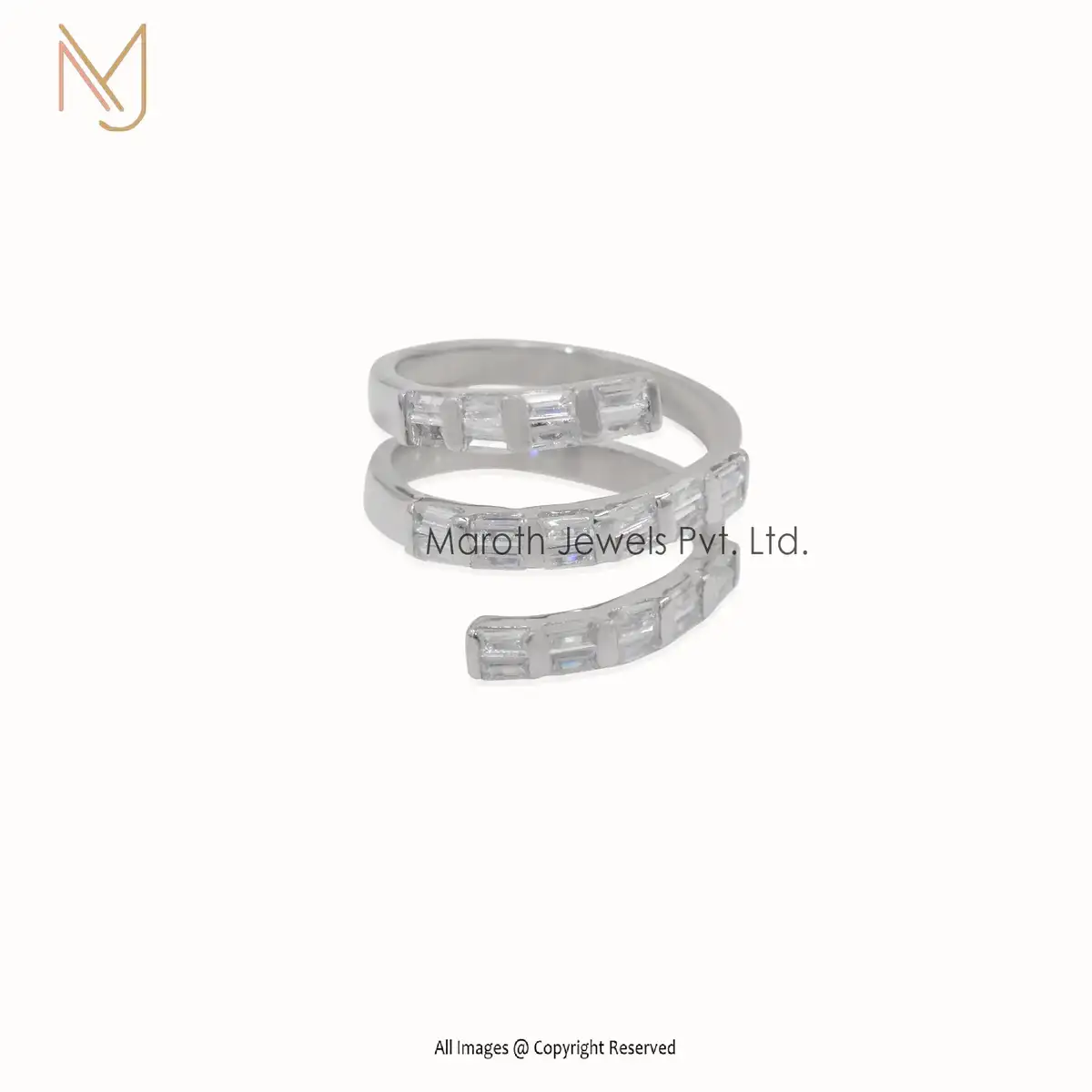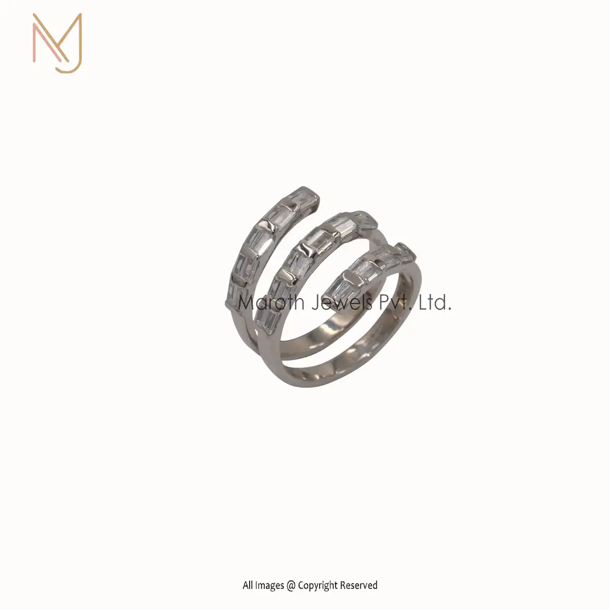 Wholesale 14K White Gold Topaz Baguette Coil Ring Jewely