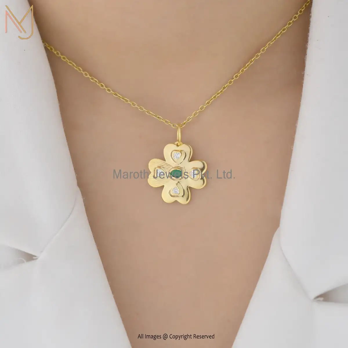 Wholesale 14K White Gold Tsavorite And Moissanite Flower Leaf Pendant Jewelry