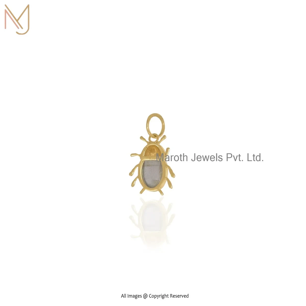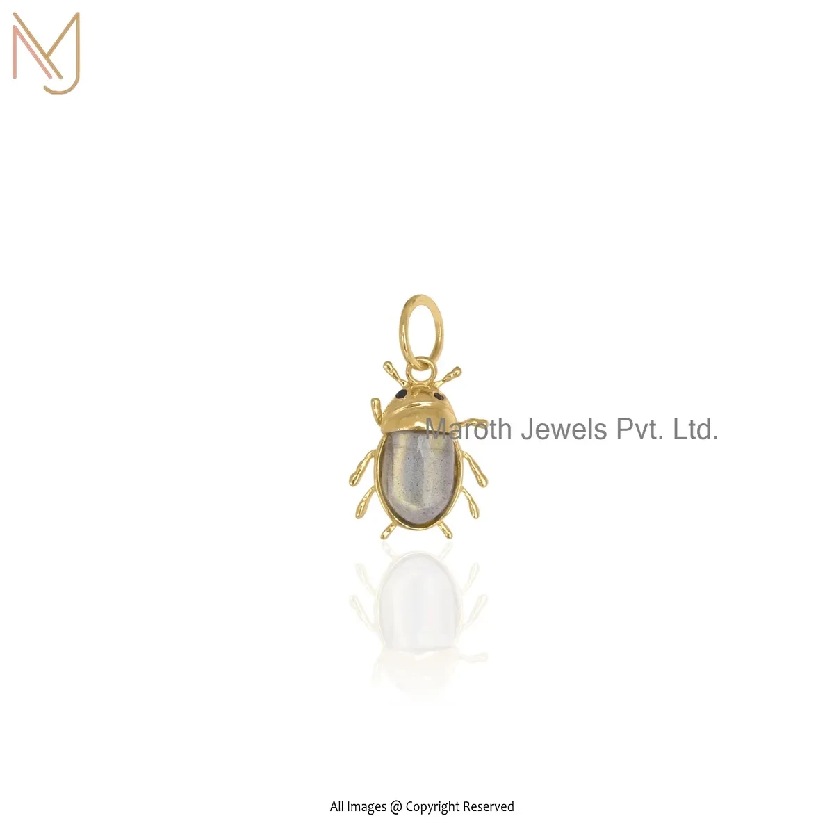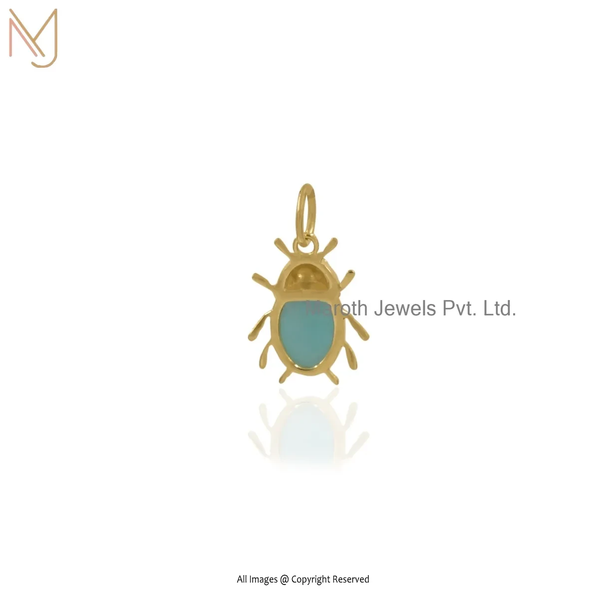 Wholesale 14K Yellow Gold Amazonite Black Spinel Gemstone Beetle Charms Pendant