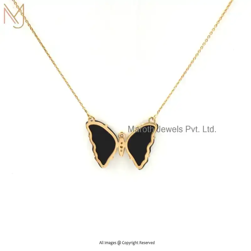 Wholesale 14K Yellow Gold Black Onxy And Cubic Zircon Butterfly Necklace Pendant